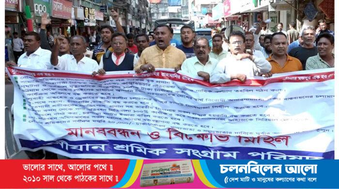 নৌযান শ্রমিকদের ন্যূনতম মজুরি ২০ হাজার টাকা নির্ধারণসহ ১০ দফা দাবি আদায়ের লক্ষ্যে আগামী ২৬ নভেম্বর রাত ১২টা থেকে সারাদেশে ধর্মঘট ডেকেছে নৌযান শ্রমিকরা। কর্মবিরতি সফল করতে শনিবার দুপুরে বরিশালে