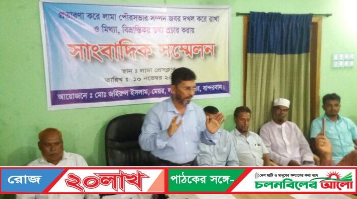 বান্দরবানের লামা পৌরসভার মেয়র মো. জহিরুল ইসলাম বলেছেন, জনৈক আক্তার উদ্দিন তপন ও তার পরিবারের সদস্যরা জনমনে মিথ্যা ও বিভ্রান্তি সৃষ্টি করে পৌরসভার সম্পদ স্থায়ী দখলের অপচেষ্টা করছেন। বৃহস্পতিবার (১০