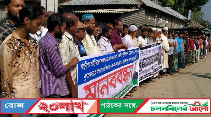 টাঙ্গাইলে নাগরপুরে মাদক সেবনে বাধা দেয়ায় অগ্নিবীণা আইডিয়াল কলেজের দপ্তরী সুলতান হোসেন স্বপন হত্যা কান্ডের চাঞ্চল্যকর ঘটনার মূল হোতাদের গ্রেফতার ও ফাঁসির দাবিতে মানবন্ধন। সোমবার সকালে কবি নজরুল উচ্চ বিদ্যালয়