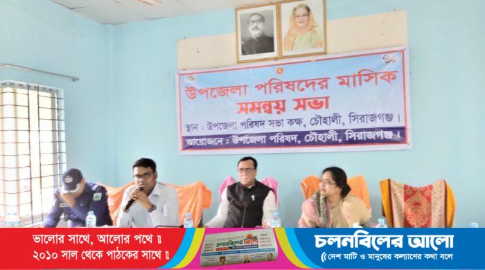 সিরাজগঞ্জের চৌহালী উপজেলা পরিষদ এর মাসিক সমন্বয় সভা অনুষ্ঠিত হয়েছে। আজ সোমবার(২০নভেম্বর) সকালে চৌহালী উপজেলা পরিষদ এর আয়োজনে উপজেলা পরিষদ হলরুমে উপজেলা পরিষদ চেয়ারম্যান মোঃ ফারুক সরকার এর সভাপতিত্বে ও উপজেলা