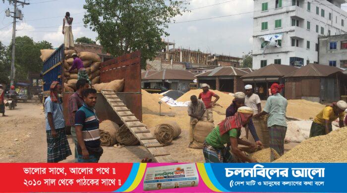 সিরাজগঞ্জের উল্লাপাড়া উপজেলায় হাটে নতুন বোরো ( ইরি ) ধান কৃষকেরা বিক্রি করছে। এক মণ ধান এক হাজার থেকে সাড়ে ১২ শ টাকা দরে কেনাবেচা হচ্ছে। কৃষকেরা এখন ধান কাটার