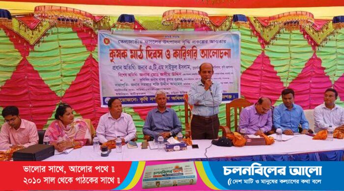সিরাজগঞ্জের উল্লাপাড়ায় তেল জাতীয় ফসলের উৎপাদন বৃদ্ধি প্রকল্পের আওতায় কৃষক মাঠ দিবস ও কারিগরি আলোচনায় কৃষকদের সাথে মতবিনিময় সভা অনুষ্ঠিত হয়েছে । শনিবার উপজেলার হাটিকুমরুল ইউনিয়নের চড়িয়াসিকা গ্রামে সিরাজগঞ্জ জেলা