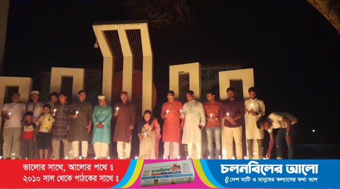 একাত্তরের ২৫শে মার্চের কালো রাতে ঘুমন্ত বাঙালির ওপর পাকিস্তানি হানাদার বাহিনীর বর্বরোচিত হামলায় শহীদদের স্মরণে ও তাদের আত্মার শান্তি কামনায় সিরাজগঞ্জের তাড়াশে মোমবাতি প্রজ্বলন কর্মসূচি অনুষ্ঠিত হয়েছে। শনিবার (২৫ মার্চ)