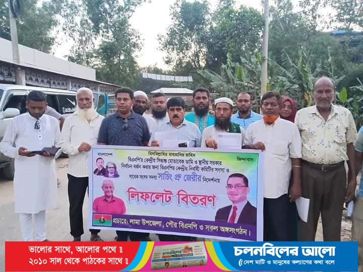 বাংলাদেশ জাতীয়তাবাদী দল (বিএনপি) কেন্দ্রীয় কমিটির সিদ্ধান্ত মোতাবেক ডামি ও স্থানীয় সরকার নির্বাচন বা উপজেলা নির্বাচন বর্জন করার জন্য কেন্দ্রীয় নির্বাহী কমিটির সদস্য ও সাবেক সাংসদ সাচিং প্রু জেরীর নির্দেশনায় ফিফলেট ও প্রচারপত্র বিতরণ করা হয়। মঙ্গলবার (১৩ মে, ২০২৪ ইং) বিকালে লামা উপজেলা, পৌর ও সকল অঙ্গসংগঠনের উদ্যোগে লামার ফাইতং ইউনিয়নসহ কয়েকটি জনসম্মুখে স্থানে নির্বাচন বর্জনের লিফলেট বিতরণ করা হয়।
