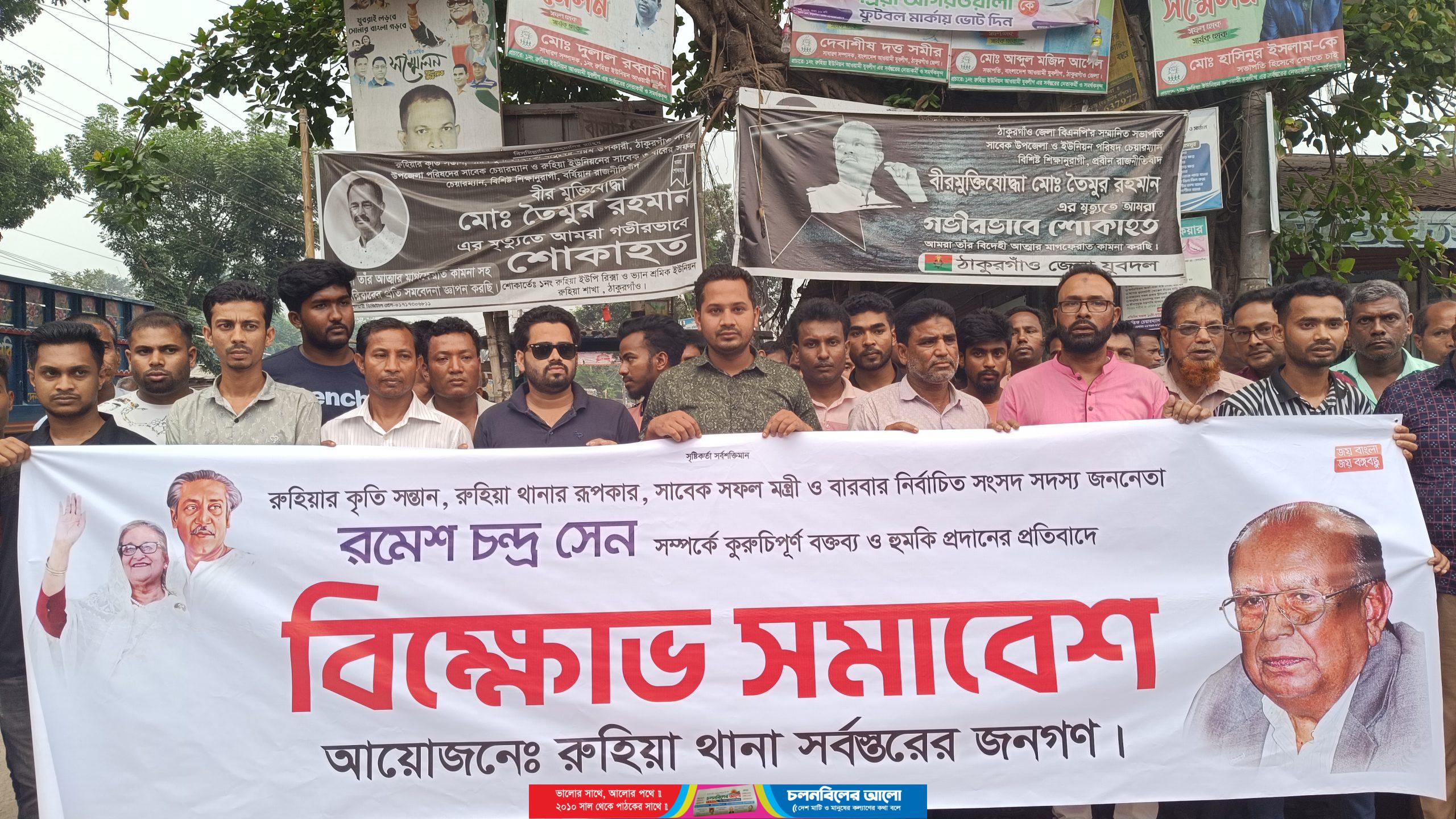 এমপি রমেশ চন্দ্র সেনকে বিতারিত করার হুমকি দেওয়ার প্রতিবাদে রুহিয়ায় প্রতিবাদ সমাবেশ
