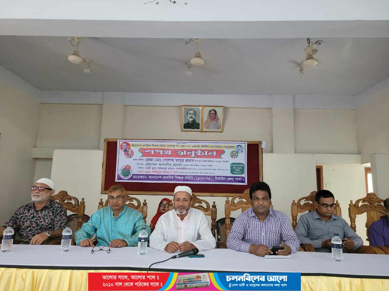 টাঙ্গাইলের নাগরপুরে সদ্য অনুষ্ঠিত বাংলাদেশ প্রাথমিক শিক্ষক সমিতি নাগরপুর উপজেলা শাখার নির্বাচনে বিজয়ী সকল শিক্ষক নেতৃবৃন্দদের শপথ গ্রহণ অনুষ্ঠিত হয়েছে। শনিবার (১৮ মে) সকালে উপজেলা পরিষদ হলরুমে আয়োজিত অনুষ্ঠানের মাধ্যমে টাঙ্গাইল জেলা প্রাথমিক শিক্ষক সমিতি’র নেতৃবৃন্দরা এই শপথ বাক্য পাঠ করান। এতে শিক্ষকদের সামগ্রিক কল্যাণ সাধন, শিক্ষা ও গবেষণার উন্নয়নে ভূমিকা রাখা সহ শিক্ষার পরিবেশের উন্নয়নের প্রতিশ্রুতি ব্যক্ত করা হয়।