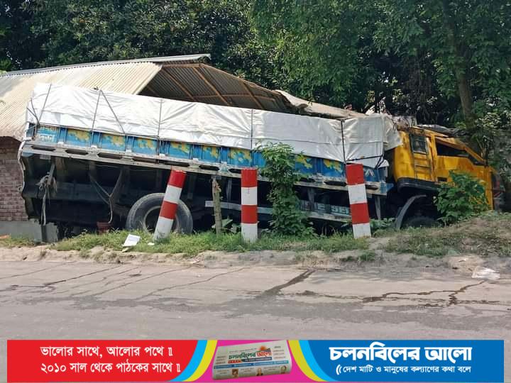 অভয়নগরে লোড ট্রাক নিয়ন্ত্রণ হারিয়ে বাড়ির মধ্যে, ২ জন আহত