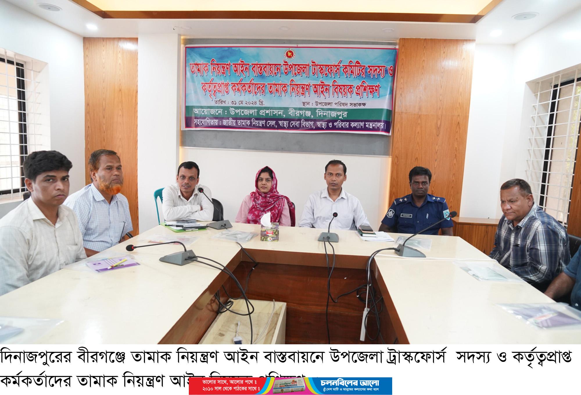 দিনাজপুরের বীরগঞ্জে তামাক নিয়ন্ত্রণ আইন বাস্তবায়নে উপজেলা ট্রাস্কফোর্স সদস্য ও কর্তৃত্বপ্রাপ্ত কর্মকর্তাদের তামাক নিয়ন্ত্রণ আইন বিষয়ক প্রশিক্ষণ অনুষ্ঠিত হয়েছে।