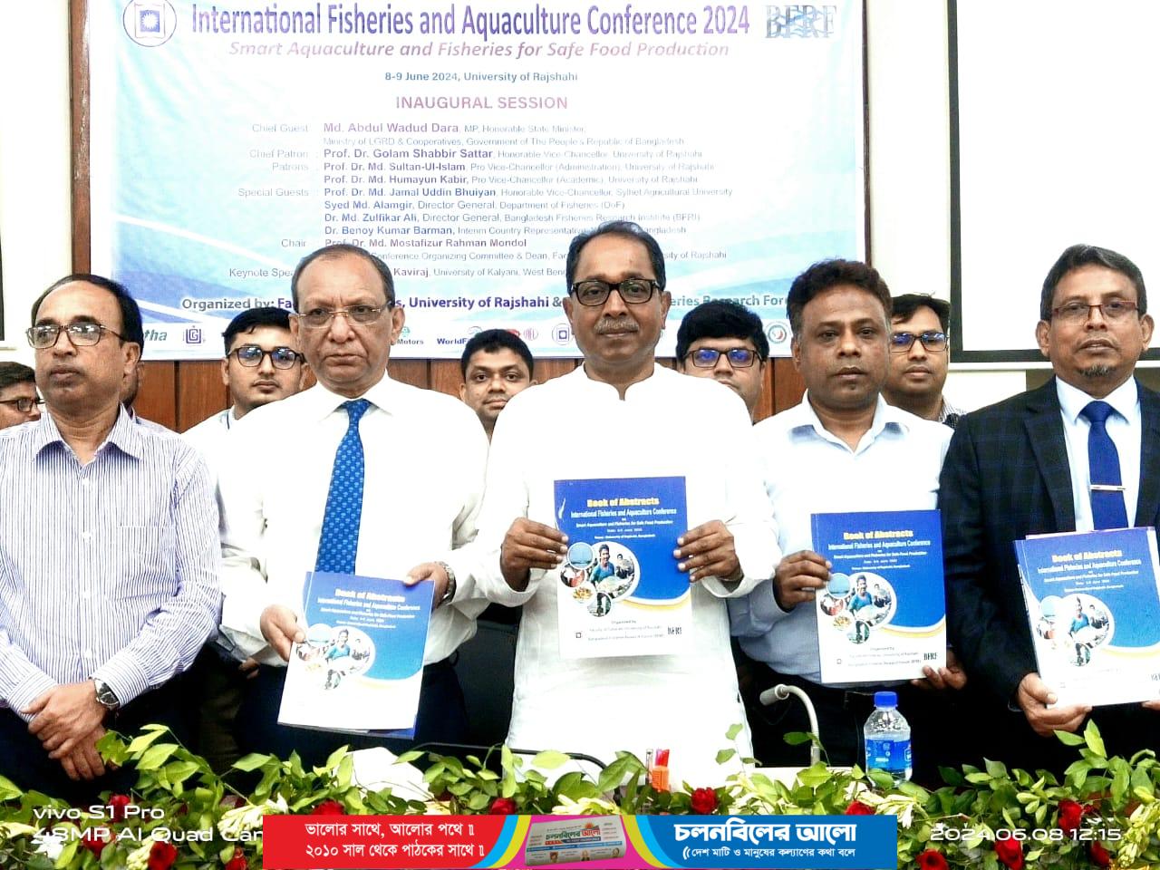 রাবি ফিশারিজ অনুষদের অধিকর্তা ও সম্মেলন সাংগঠনিক কমিটির আহ্বায়ক অধ্যাপক মো. মোস্তাফিজুর রহমান মন্ডলের সভাপতিত্বে এই অনুষ্ঠানে বিশেষ অতিথি ছিলেন সিলেট কৃষি বিশ্ববিদ্যালয়ের উপাচার্য অধ্যাপক মো. জামাল উদ্দিন ভূইয়া, ফিশারিজ অধিদপ্তরের মহাপরিচালক সৈয়দ মো. আলমগীর, বাংলাদেশ ফিশারিজ রিসার্চ ইনস্টিটিউটের মহাপরিচালক ড. মো. জুলফিকার আলী ও ওয়ার্ল্ড ফিস বাংলাদেশের কান্ট্রি রিপ্রেজেন্টেটিভ ড. বিনয় কুমার বর্মন।