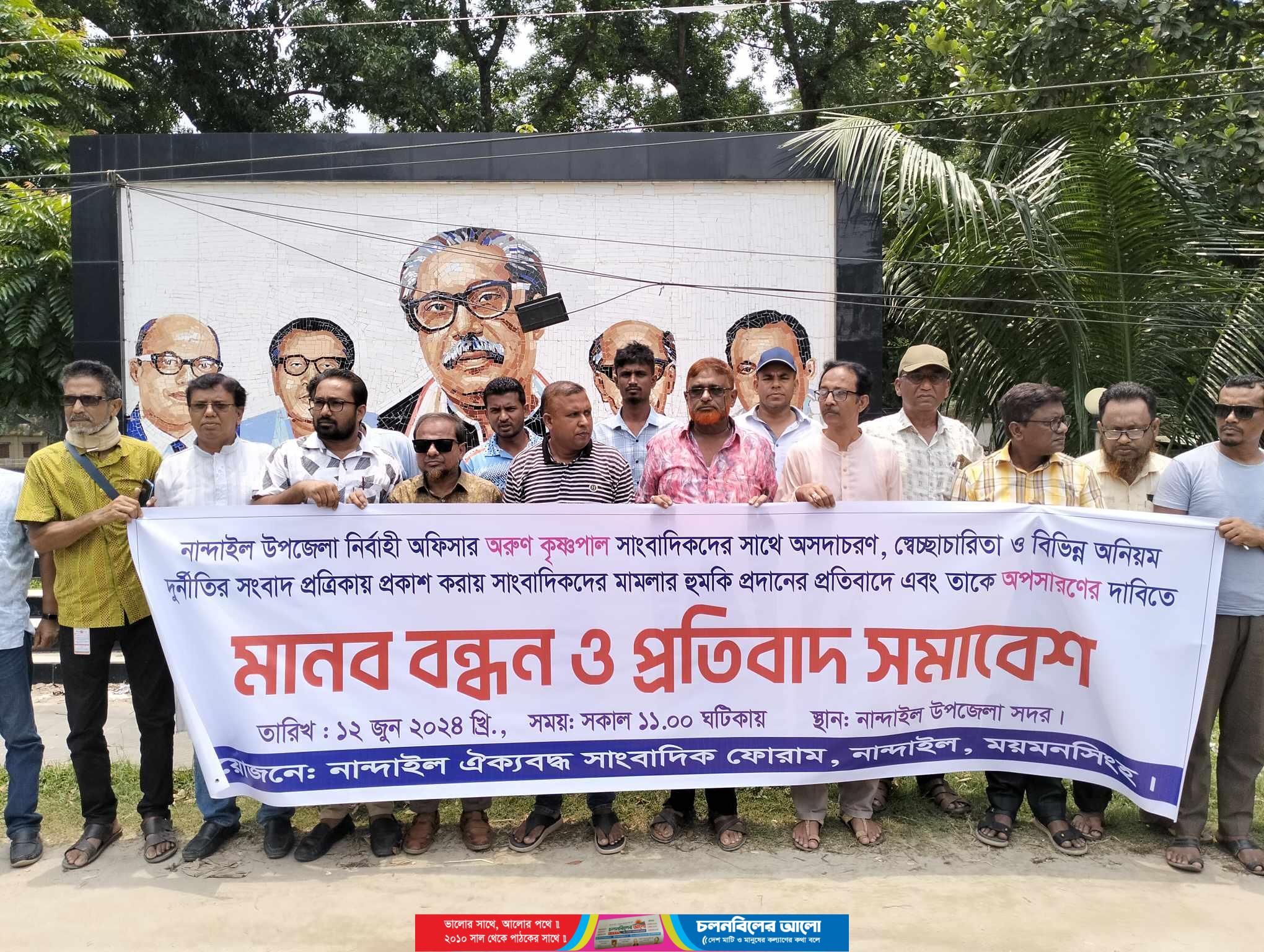 নান্দাইলে ইউএনওর বিরুদ্ধে সাংবাদিকদের মানববন্ধন