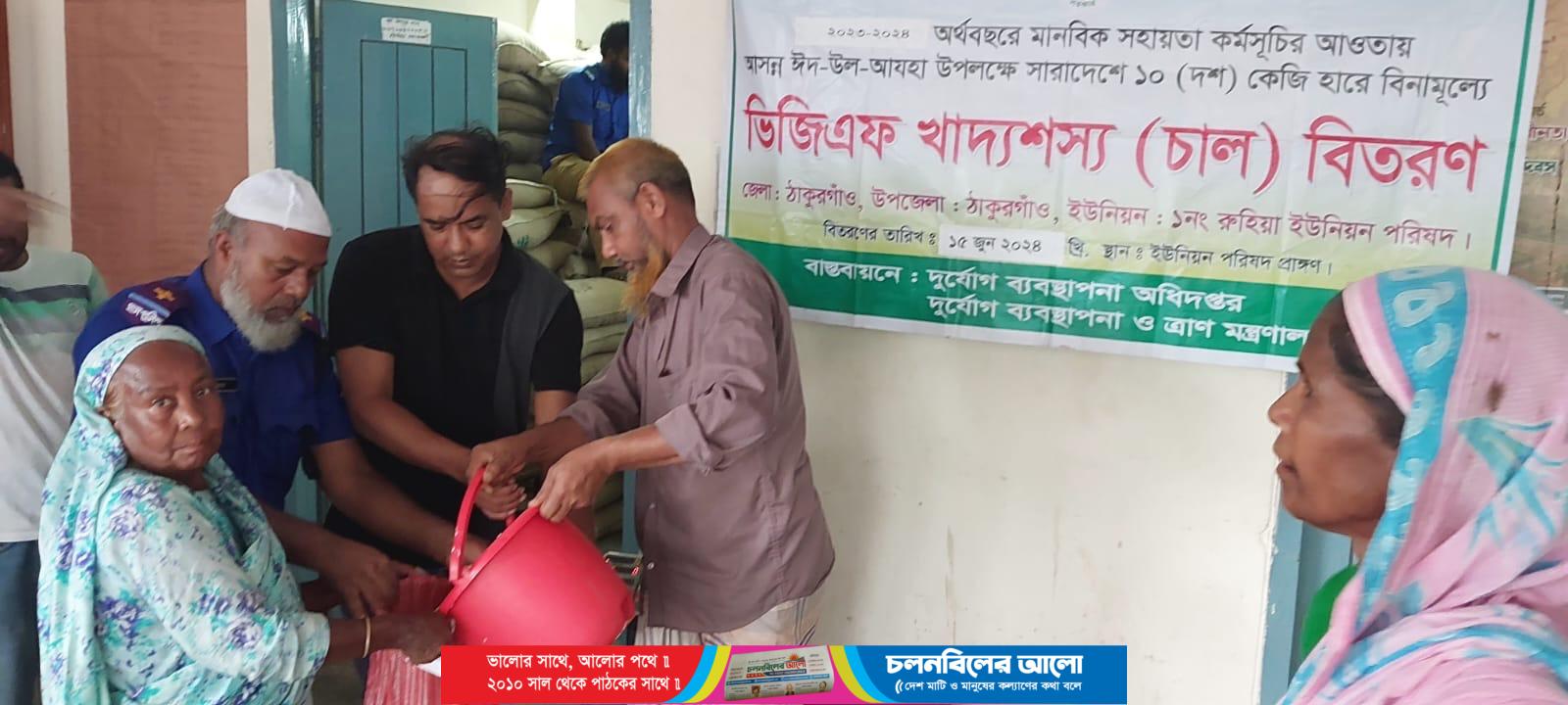 ঠাকুরগাঁও সদর উপজেলার ১ নং রুহিয়া ইউনিয়ন পরিষদে আসন্ন ঈদুল আযহা উপলক্ষে ১০ কেজি করে  ভিজিএফ এর চাল বিতরণ করা হয়।