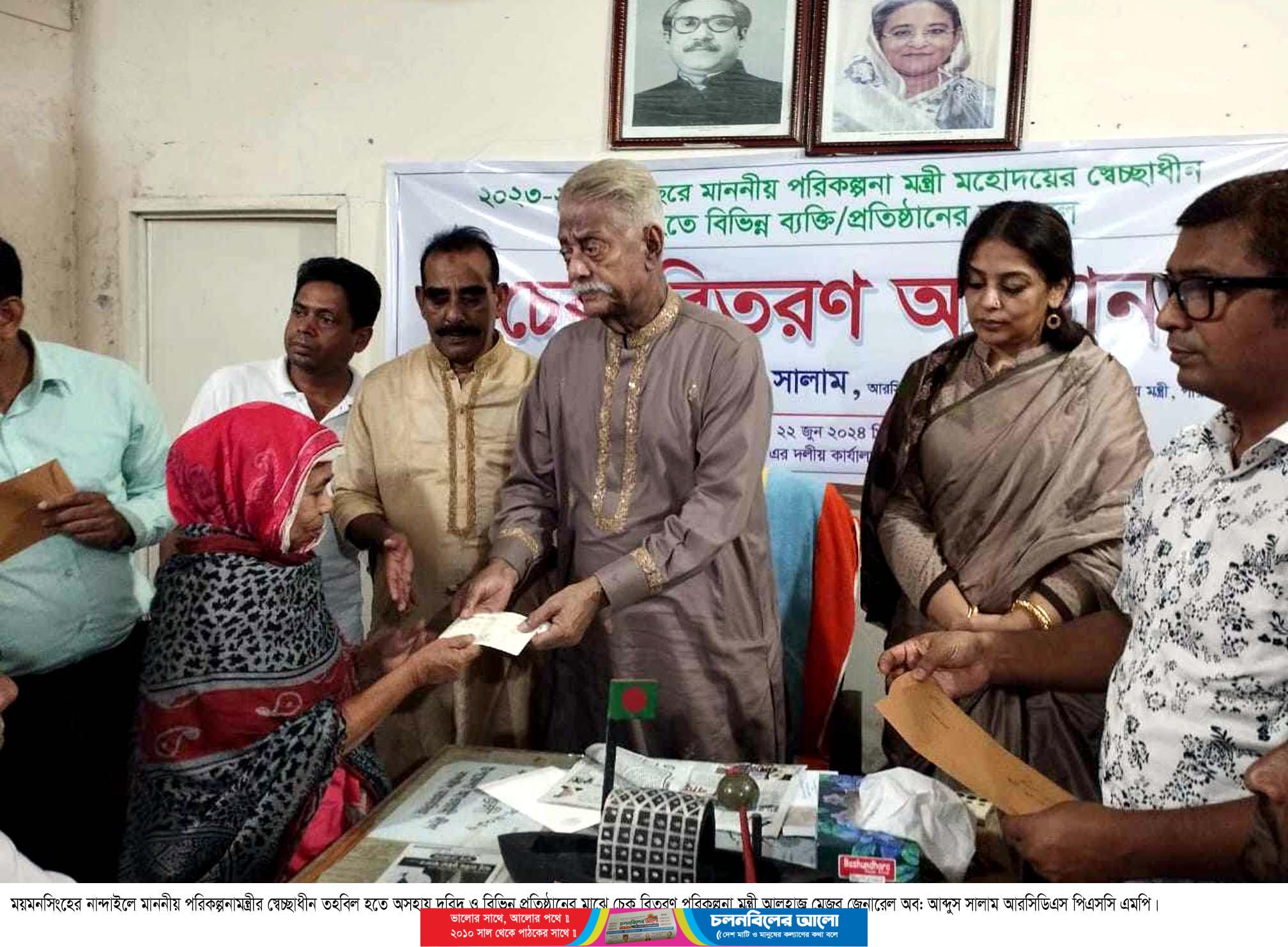 নান্দাইলে পরিকল্পনা মন্ত্রীর স্বেচ্ছাধীন তহবিলের ১০লাখ টাকার চেক বিতরণ