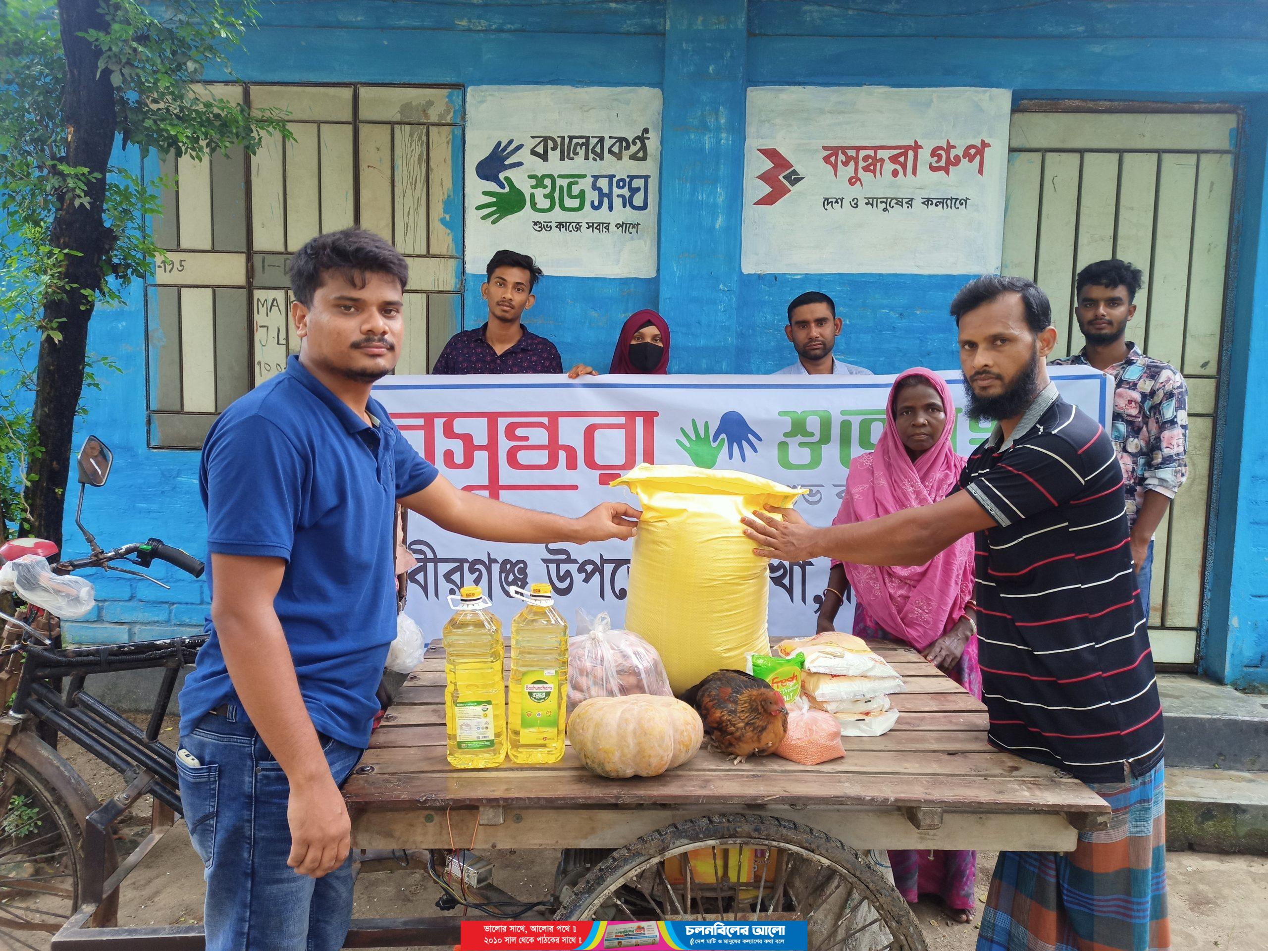 এমন দুর্বিষহ পরিস্থিতিতে সহিদ আলীর পরিবারের পাশে এক মাসের খাদ্য সামগ্রী নিয়ে, এক বস্তা চাল, ডাল ২ কেজি, সয়াবিন তৈল ৪ লিটার, আটা ৫ কেজি, পেয়াজ ২কেজি, আলু ৩ কেজি, লবন ১ কেজি, মিষ্টি কুমড়া ১টি, দেশী মুরগী ও নগদ কিছু অর্থ নিয়ে পাশে দাড়িয়েছে বসুন্ধরা শুভসংঘ বীরগঞ্জ উপজেলা শাখার বন্ধুরা।