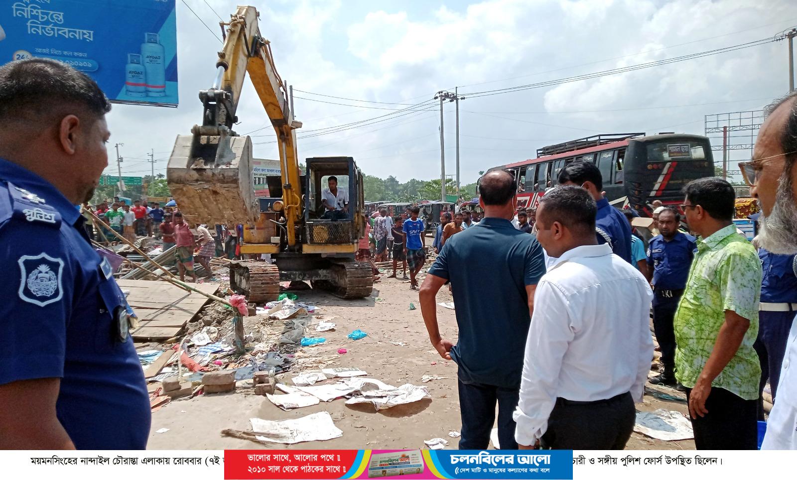 নান্দাইল চৌরাস্তায় অবৈধ স্থাপনা ভেঙ্গে গুড়িয়ে দিলো প্রশাসন