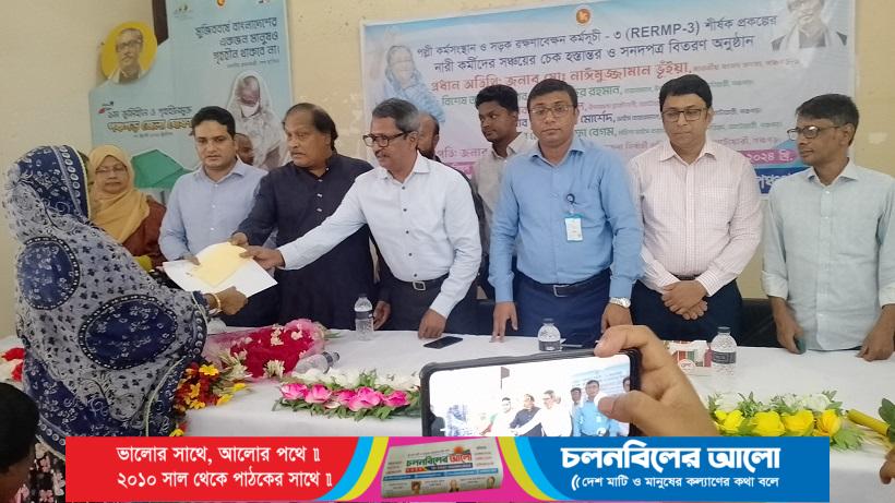 পঞ্চগড়ের আটোয়ারীতে স্থানীয় সরকার ও প্রকৌশল অধিদপ্তর (এলজিইডি) ’র পল্লী কর্মসংস্থান ও সড়ক রক্ষণাবেক্ষণ কর্মসূচি-৩ (আরইআরএমপি-৩) এর নারী কর্মীদের মাঝে চেক হস্তান্তর ও সনদপত্র বিতরণ করা হয়েছে। মঙ্গলবার ( ১৬ জুলাই) সকালে উপজেলা পরিষদ হলরুমে প্রকল্পের নারী কর্মীদের মাঝে তাদের সঞ্চয়কৃত অর্থের চেক হস্তান্তর ও সনদ বিতরণ করা হয়। উপজেলা নির্বাহী অফিসার (অ: দা:) মোঃ জাকির হোসেন এর সভাপতিত্বে এবং উপজেলা মাধ্যমিক শিক্ষা অফিসার লুৎফুল কবির মোঃ কামরুল হাসানের সঞ্চালনায় পঞ্চগড়-১ আসনের সংসদ সদস্য মোঃ নাঈমুজ্জামান ভুঁইয়া (মুক্তা) প্রধান অতিথি হিসেবে নারী কর্মীদের আত্মকর্মসংস্থান বিষয়ে পরামর্শমূলক বক্তব্য রাখেন। বিশেষ অতিথির বক্তব্য রাখেন, উপজেলা পরিষদ চেয়ারম্যান অ্যাডভোকেট মোঃ আনিসুর রহমান, ভাইস চেয়ারম্যান মোঃ সেলিম মোর্শেদ(মানিক), মহিলা ভাইস চেয়ারম্যান মোছাঃ লুৎফা বেগম প্রমুখ। এসময় প্রধান অতিথি ৬০ জন নারী কর্মীর মাঝে আনুষ্ঠানিকভাবে প্রায় ৭২ লাখ টাকার চেক হস্তান্তর সহ সনদ বিতরণ করেন। একই সময়ে উপজেলার ১০ জন দুস্থ অসুস্থ্য ব্যক্তিকে সমাজ সেবা অধিদপ্তরের পক্ষ থেকে ৩,০০০/- টাকা করে চিকিৎসা সহায়তা প্রদান করা হয়। এছাড়াও সংসদ সদস্যের প্রতিশ্রুতি পরিবেশ রক্ষা সহ নিরাপদ অক্সিজেন গ্রহণে আটোয়ারীকে সবুজায়ন করতে বৃক্ষ রোপনের অংশ হিসেবে উপজেলার ১৪৬ টি মসজিদে নিম গাছের চারা সহ বিভিন্ন প্রজাতির গাছের চারা আনুষ্ঠানিকভাবে বিতরণ করা হয়েছে। গাছের চারাগুলো ইসলামিক ফাউন্ডেশন উপজেলা ফিল্ড সুপারভাইজার মোঃ তোফাজ্জল হোসেনের উপস্থিতিতে সংশ্লিষ্ট মসজিদের ইমামদের হাতে তুলে দেন সংসদ সদস্য নাঈমুজ্জামান ভুঁইয়া(মুক্তা)। এসময় অন্যান্যদের মধ্যে আরো উপস্থিত ছিলেন পঞ্চগড় সদর উপজেলা ভাইস চেয়ারম্যান কাজী আল তারিক, উপজেলা স্বাস্থ্য ও প. প. কর্মকর্তা ডা. মোঃ হুমায়ুন কবীর, উপজেলা কৃষি অফিসার মোস্তাক আহমেদ, বিভিন্ন সরকারি দপ্তরের কর্মকর্তা, জনপ্রতিনিধি, রাজনৈতিক নেতৃবৃন্দ , উপকারভোগী সহ গণমাধ্যমকর্মীগণ।
