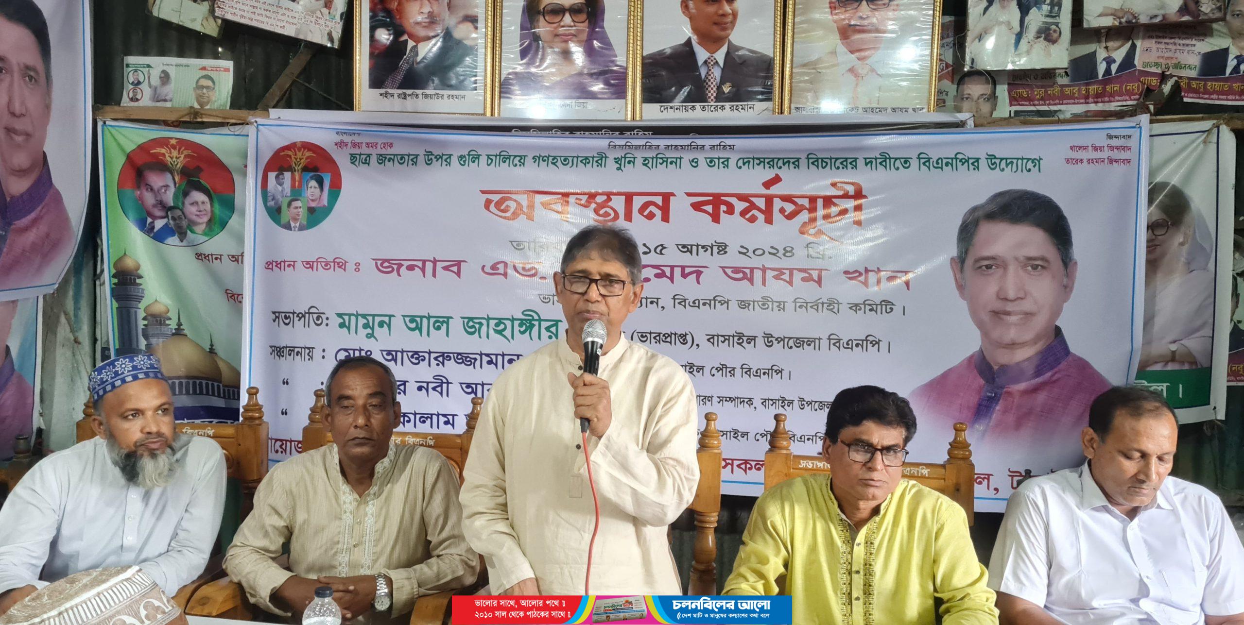 কেন্দ্রীয় কর্মসূচির অংশ হিসেবে টাঙ্গাইলের বাসাইলে বিএনপির অবস্থান কর্মসূচি পালিত হয়েছে। বৃহস্পতিবার (১৫ আগস্ট) দিনব্যাপী স্থানীয় দলীয় কার্যালয় ও বাসাইল বাসস্ট্যান্ড চত্বরে এ কর্মসূচির আয়োজন করা হয়।