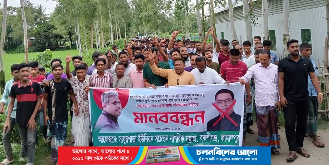 জামালপুরেইউনিয়ন চেয়ারম্যান বাবুর বিরুদ্ধে মানববন্ধন