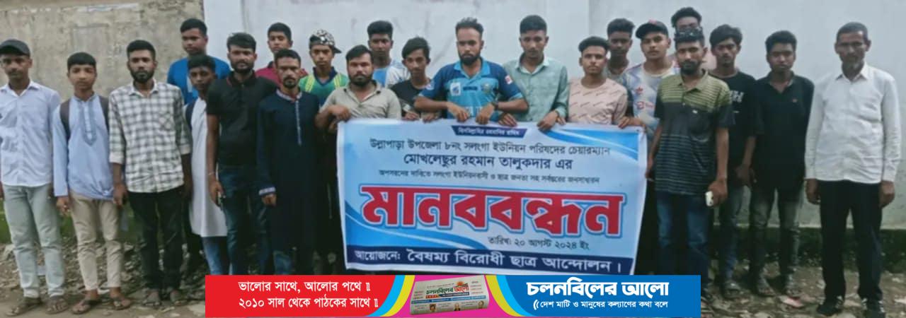 সিরাজগঞ্জের ৮ নং সলঙ্গা ইউনিয়ন পরিষদের চেয়ারম্যান,সলঙ্গা থানা আওয়ামী লীগের সাংগঠনিক সম্পাদক মোখলেছুর রহমান তালুকদারের অনিয়ম,দুর্নীতি, দু:শাসনে চেয়ারম্যানের পদ থেকে অপসারণের দাবীতে মানববন্ধন করেছে ছাত্র-জনতা।বৈষম্য বিরোধী ছাত্র-জনতার আয়োজনে গতকাল দুপুরে সলঙ্গা ফাজিল ডিগ্রী মাদ্রাসা মোড়ে ইউনিয়নের সর্বস্তরের জনগনকে নিয়ে এ মানব বন্ধন অনুষ্ঠিত হয়। এ সময় বক্তব্য রাখেন, সলঙ্গা থানা বৈষম্য বিরোধী ছাত্র আন্দোলনের সমন্বয়ক মামুন সরকার সহ অনেকে। বক্তারা বলেন, আওয়ামী লীগ নেতা মোখলেছুর রহমান নৌকা প্রতীক নিয়ে চেয়ারম্যান নির্বাচিত হওয়ার পর সংশ্লিষ্ট ইউপি সদস্যদের বৃদ্ধাঙ্গুল দেখিয়ে পরিষদের সকল উন্নয়ন কাজ হতে বঞ্চিত করেন। ক্ষমতার দাপট দেখিয়ে একাই প্যানেল চেয়ারম্যান সাজিয়ে এক তরফা ভাবে পরিষদের সকল কার্যক্রম চালিয়ে সরকারি বরাদ্দ লুটপাট করেছেন।৫ আগস্ট সরকার পতনের পর হতে তিনি গাঢাকা দিয়েছেন। এ পর্যন্ত তাকে পরিষদে দেখা যায়নি।এতে পরিষদের কার্যক্রমের সেবা থেকে বঞ্চিত হচ্ছে সাধারন জনগন। তাই দুর্নীতিবাজ চেয়ারম্যান মোখলেছুর রহমান তালুকদারকে চেয়ারম্যানের পদ থেকে অপসারন ও পদত্যাগ দাবী করেছেন তারা।