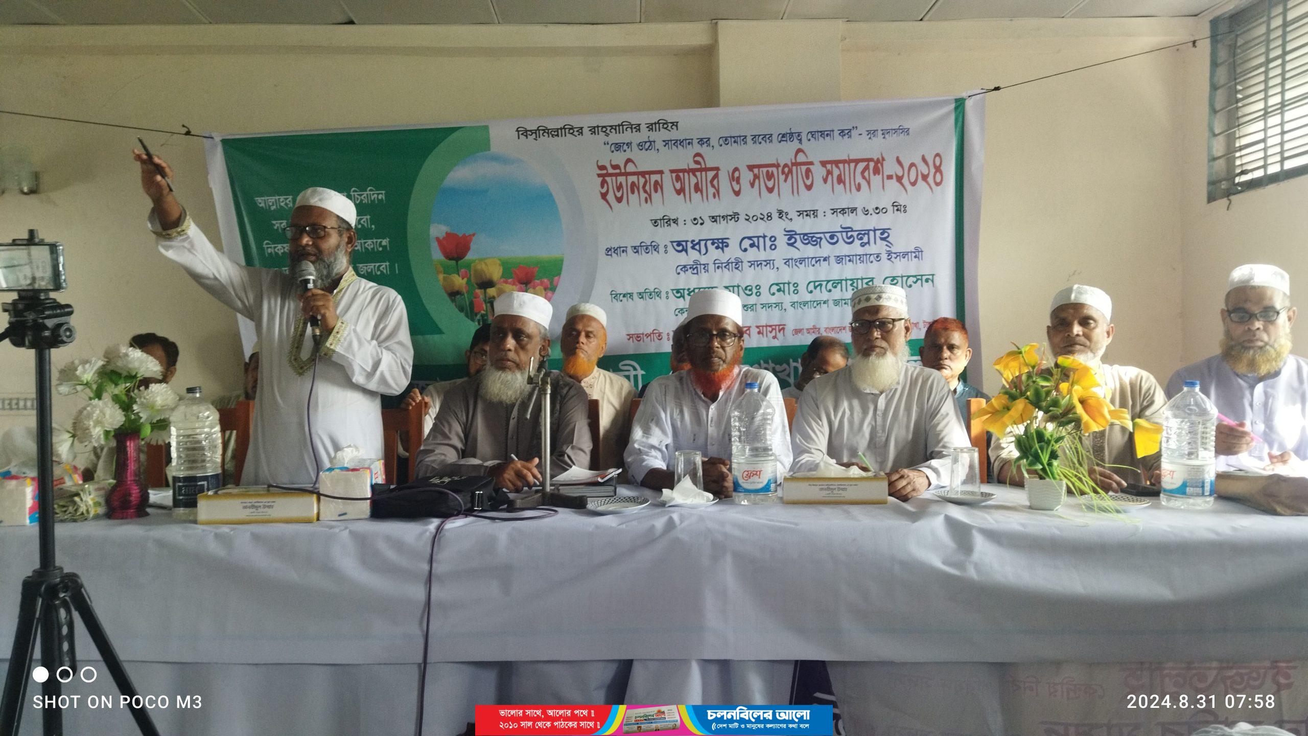 শনিবার সকালে টাংগাইল শহরের একটি হল রুমে বেশ জাকজমক ভাবে ইউনিয়ন আমীর ও সভাপতি সম্মেলন অনুষ্ঠিত হয়।এতে স্বতঃস্ফূর্তভাবে শত শত নেতাকর্মীরা বাধাহীন ভাবে এই  সম্মেলনে যোগদান করেন। এই সম্মেলনে প্রধান অতিথি হিসেবে উপস্থিত ছিলেন বাংলাদেশ জামায়াতে ইসলামী কেন্দ্রীয় নির্বাহী পরিষদের সদস্য অধ্যক্ষ মো. ইজ্জতউল্লাহ।