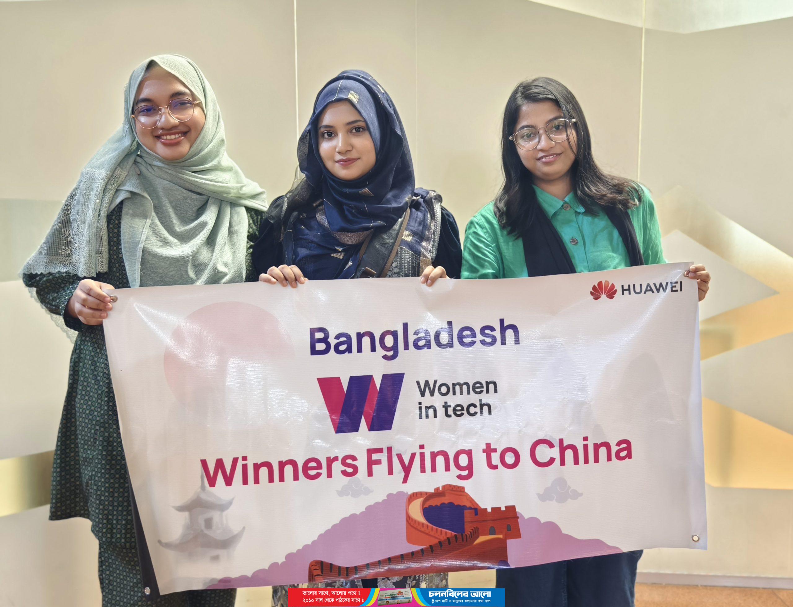 প্রযুক্তি খাতের নারীদের জন্য আয়োজিত হুয়াওয়ের ফ্ল্যাগশিপ প্রতিযোগিতা ‘উইমেন ইন টেক’-এর তিন বিজয়ী চীনের উদ্দেশ্যে রওনা দিয়েছেন। বিজয়ীরা ইন্টারন্যাশনাল ডিজিটাল এনার্জি এক্সপো (আইডিইই) ২০২৪ প্রদর্শনীতে অংশগ্রহণ করবেন। এছাড়া তারা হুয়াওয়ের প্রধান কার্যালয় ও ডংগুয়ান ক্যাম্পাসে প্রশিক্ষণের সুযোগ পাবেন। গত ৩ সেপ্টেম্বর শুরু হওয়া এই সফর আগামী ১০ সেপ্টেম্বর শেষ হবে।
