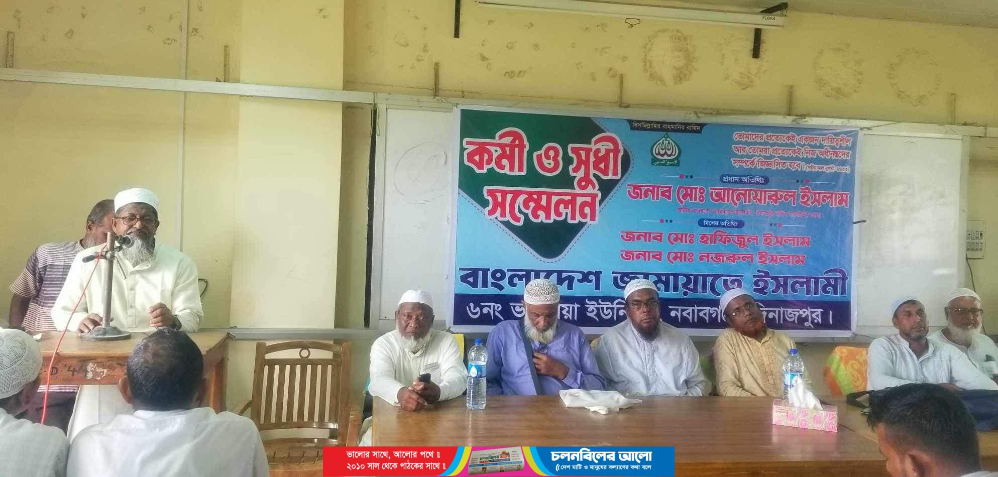শনিবার সকাল ১১টায় দিনাজপুরের নবাবগঞ্জ উপজেলার ভাদুরিয়া স্কুল এন্ড কলেজ হলরুমে ভাদুরিয়া ইউনিয়ন জামায়াতে ইসলামীর আয়োজনে এ সমাবেশ অনুষ্ঠিত হয়। এতে ভাদুরিয়া ইউনিয়ন জামায়াতে ইসলামীর আমীর মাওলানা আন্তাজ আলীর সভাপতিতে প্রধান অতিথির বক্তব্য দেন কেন্দ্রীয় মজলিসের শুরা সদস্য ও দিনাজপুর দক্ষিণ সাংগঠনিক জেলা শাখার আমীর মো.আনোয়ারুল ইসলাম।