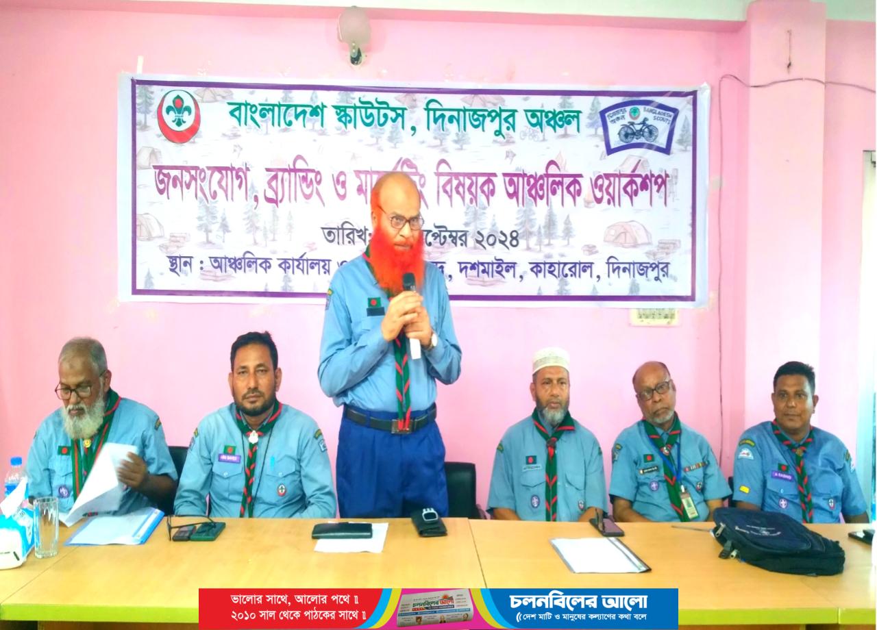 বাংলাদেশ স্কাউটস দিনাজপুর অঞ্চলের পরিচালনায় দিনব্যাপী জনসংযোগ, ব্র্যান্ডিং, মার্কেটিং ও অনলাইন মেম্বারশীপ রেজিষ্ট্রেশন বিষয়ক ওয়ার্কশপ অনুষ্ঠিত হয়েছে। সকালে দিনাজপুরের দশমাইলস্থ আঞ্চলিক স্কাউট প্রশিক্ষণ কেন্দ্রে ওয়ার্কশপের উদ্বোধন করেন আঞ্চলিক স্কাউটসের সহ সভাপতি মোঃ আখতারুজ্জামান, এএলটি। বর্ষীয়ান লিডার ট্রেনার মোঃ জালাল উদ দীন এর সভাপতিত্বে এসময় আঞ্চলিক উপ পরিচালক মোঃ আব্দুর রশিদ, আঞ্চলিক সম্পাদক মোঃ আবু সাঈদ, আঞ্চলিক কোষাধ্যাক্ষ মোঃ মনজুরুল হক, যুগ্ম সম্পাদক মোঃ সাফিউল ইসলাম, লিডার ট্রেনার আনজুমান আরা বেবী, দেবীগঞ্জ জাতীয় স্কাউট প্রশিক্ষণ কেন্দ্রের উপ পরিচালক মোঃ আব্দুল্লাহ আল মামুন প্রমুখ বক্তব্য রাখেন। স্কাউটসের সহকারী পরিচালক সুধীর চন্দ্র বর্মন ও মোঝ সৈকত হোসেন অনুষ্ঠানটি সঞ্চালনা করেন।