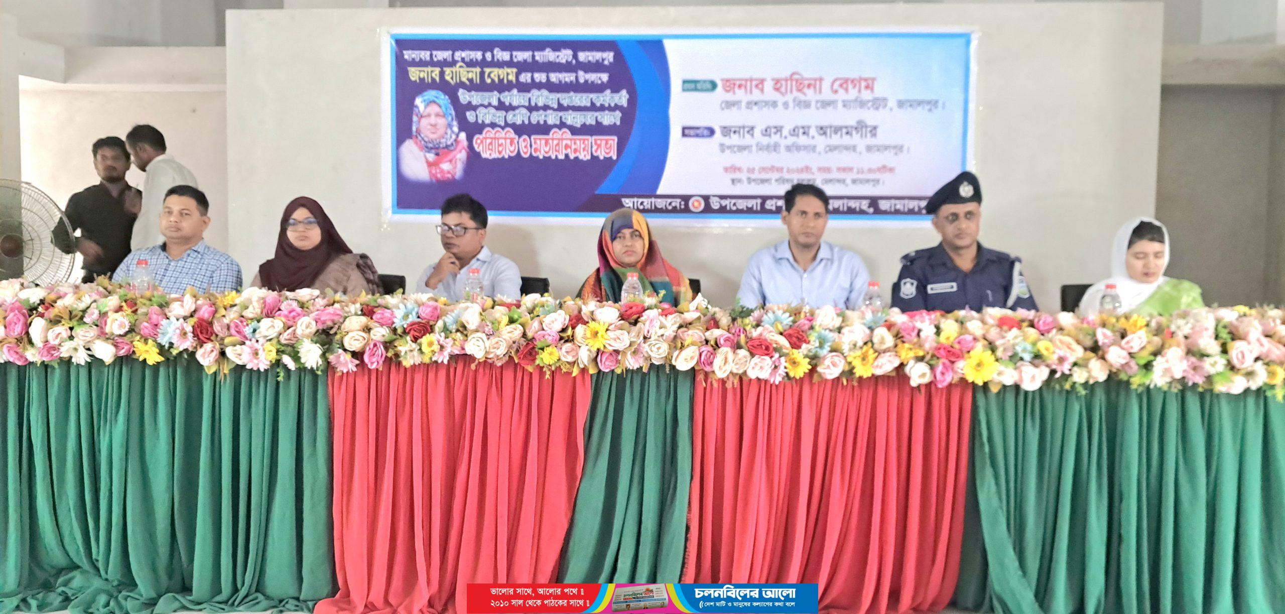 জামালপুর জেলার নবাগতা জেলা প্রশাসকের পরিচিতি ও মতবিনিময় সভা # কামরুজ্জামান কানু জামালপুর — জামালপুর জেলার নবাগতা জেলা প্রশাসক হাছিনা বেগম এর এক মতবিনিময় সভা অনুষ্ঠিত হয়েছে। উক্ত সভায় সভা পতিত্ব করেন মেলান্দহ উপজেলা নির্বাহী অফিসার এস এম আলমগীর। প্রধান অতিথি হিসেবে উপস্থিত ছিলেন জেলার নবাগত জেলা প্রশাসক হাছিনা বেগম। বিশেষ অতিথি ছিলেন অতিরিক্ত জেলা প্রশাসক (সার্বিক) মো: সাইফুল ইসলাম। সহকারী কমিশনার ও এক্সিকিউটিভ ম্যাজিষ্টেট তানিয়া তাসকিন তানি। এসিল্যান্ড মেলান্দহ। দুপুর ১২-টায় উপজেলা হল রুমে অনুষ্ঠান টি অনুষ্ঠিত হয়েছে। বৈশম্য বিরোধী ছাত্র নেতা,,বীর মূক্তিযোদ্ধাগণ,,বিএনপির নেতাগণ,,জামায়াত নেতাগণ,,ব্যাবসায়ীনেতারা,,ছাত্র /ছাত্রী সহ সকল কর্মকর্তা,ও, কর্মচারী সহ এলাকার সুধীসমাজ গণ উপস্থিত ছিলেন। বক্তারা বলেন শৈরাচার সরকারের পতনেরপর এখনও, মদ,,গাজা,, ইয়াবার, প্রোথাবেড়েই চলেছে,, চাঁদাবাজি ও চলছে এই কি আমরাচেয়ে ছিলাম। এর,কি প্রতিকারনেই। পরিচিতি সভায় সকলে বলেন এখনও নেশা চাঁদা বাজী চলছে।