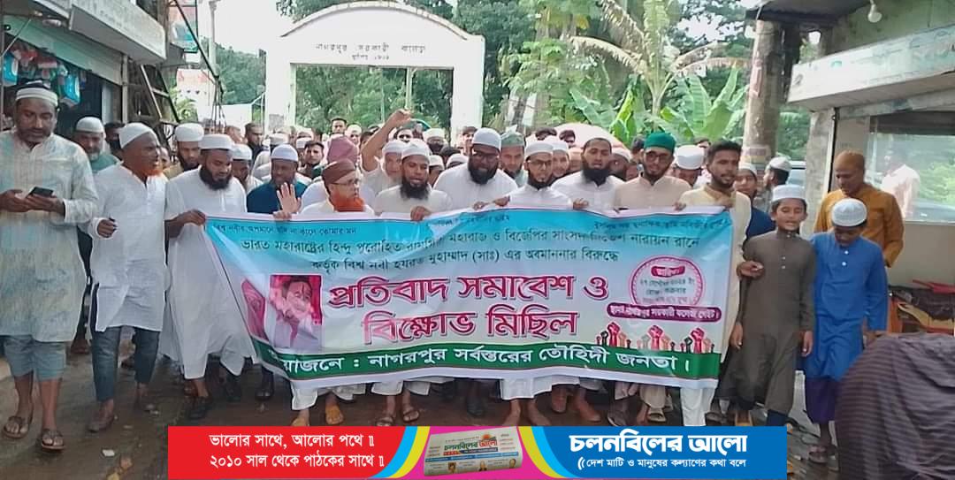 পার্শ্ববর্তী দেশ ভারতের মহারাষ্ট্রের পুরোহিত রামগিরি মহারাজ ও বিজেপি সংসদ সদস্য নিতেশ নারায়ন রানে মহানবী (সাঃ) কে নিয়ে বাজে কটুক্তির প্রতিবাদে টাঙ্গাইলের নাগরপুরে তৌহিদী জনতার উদ্যোগে বিক্ষোভ মিছিল অনুষ্ঠিত