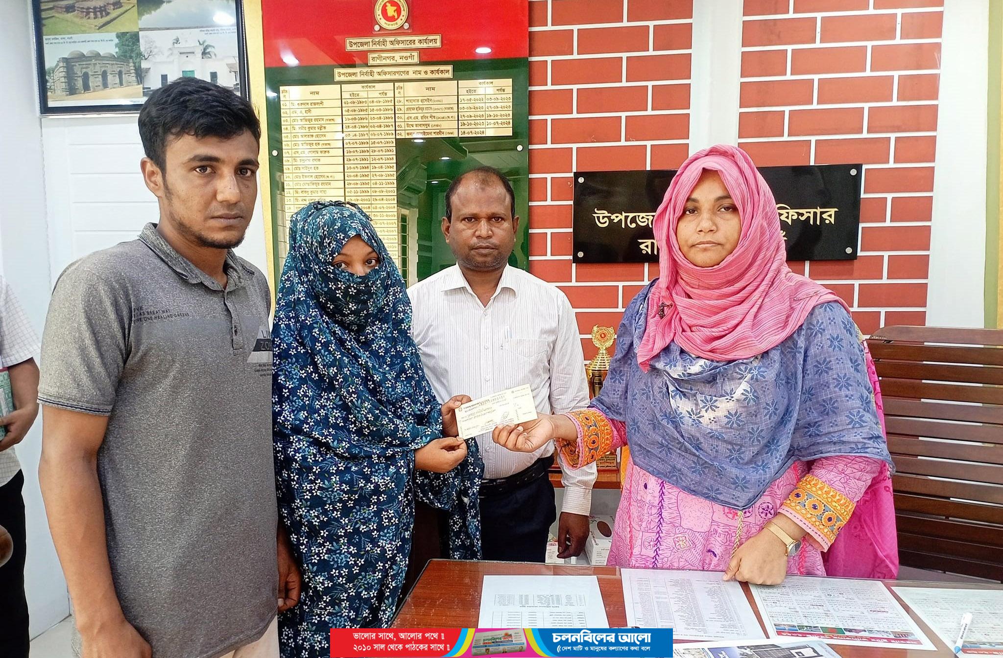 নওগাঁর রাণীনগরে পুকুরের পানিতে ডুবে মারা যাওয়া ছয় বছর বয়সি শিশু আয়েশা সিদ্দীকার পরিবারকে আর্থিক সহায়তা করা হয়েছে। সোমবার সকালে শিশুটির মা বিউটি আক্তারের হাতে দুর্যোগ ব্যবস্থাপনা ও ত্রাণ মন্ত্রনালয়ের বরাদ্দকৃত ২০ হাজার টাকার চেক তুলে দেন উপজেলা নির্বাহী কর্মকর্তা মোহাইমেনা শারমীন।