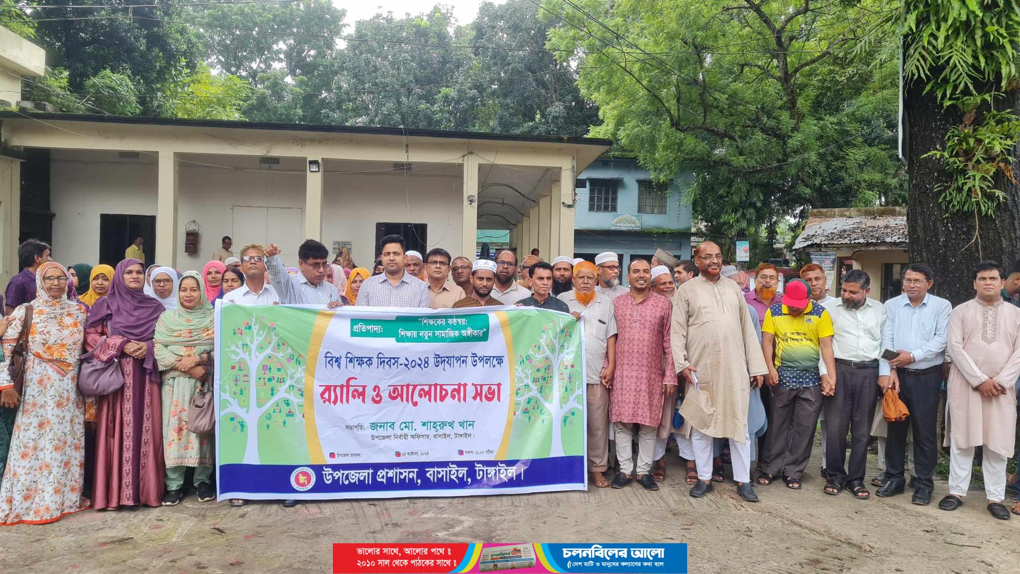 টাঙ্গাইলের বাসাইলে ‘শিক্ষকের কণ্ঠস্বর, শিক্ষায় নতুন সামাজিক অঙ্গীকার’ এ প্রতিপাদ্যকে সামনে রেখে বিশ্ব শিক্ষক দিবস পালিত হয়েছে। শনিবার (৫ অক্টোবর) দুপুরের দিকে এ উপলক্ষে উপজেলা প্রশাসনের উদ্যোগে আলোচনা সভা ও র্যালী অনুষ্ঠিত হয়। উপজেলা পরিষদ মিলনায়তনে আয়োজিত আলোচনা সভায় সভাপতিত্ব করেন উপজেলা নির্বাহী কর্মকর্তা মো. শাহরুখ খান। এসময় উপস্থিত ছিলেন উপজেলা মাধ্যমিক শিক্ষা কর্মকর্তা মতিউর রহমান খান, উপজেলা একাডেমিক সুপারভাইজার আল আমিন, বাসাইল সরকারি জোবেদা-রুবেয়া মহিলা কলেজের অধ্যক্ষ মশিউর রহমান খান আপেল, বাসাইল ডিগ্রী কলেজের অধ্যক্ষ জাহাঙ্গীর হোসেন, মাধ্যমিক শিক্ষক সমিতির জেলা শাখার সাধারণ সম্পাদক মীর মনিরুজ্জামান, উপজেলা মাধ্যমিক শিক্ষক সমিতির সভাপতি আবুল কাশেম মিঞা, সাধারণ সম্পাদক ওসমান আলী মিঞা, মাদরাসা শিক্ষকদের সংগঠন বাংলাদেশ জমিয়াতুল মোদার্রেছীনের উপজেলার শাখার সভাপতি মো. হানিফ উদ্দিন খান, সাধারণ সম্পাদক মো. শহীদুল ইসলাম, উপজেলা প্রাথমিক শিক্ষক সমিতির সভাপতি মির্জা মোশারফ হোসেন, সাধারণ সম্পাদক মনির খান ইমন প্রমুখ।