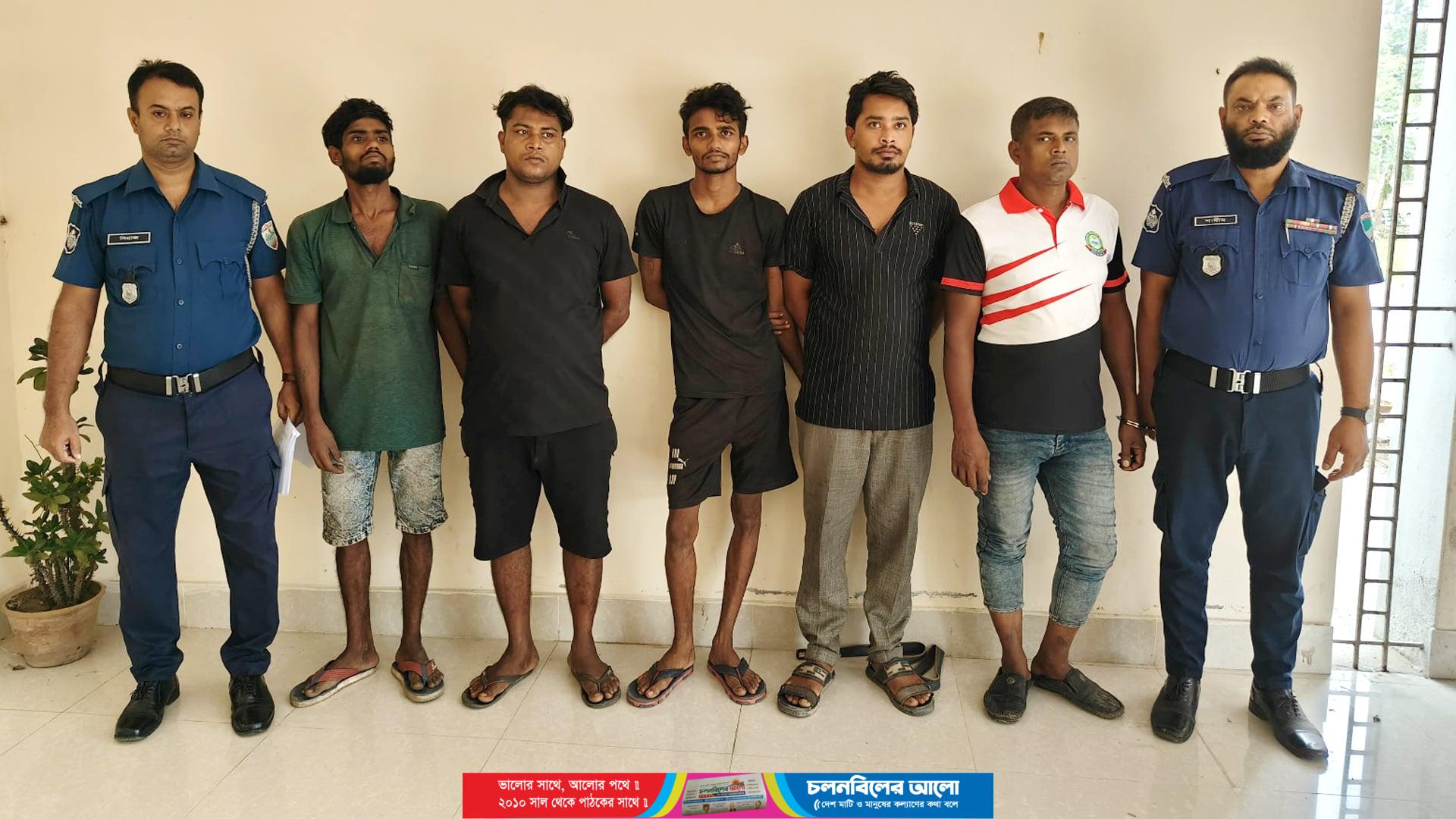 আটক আসামীরা হলেন, বেনাপোল পোর্ট থানাধীন তালশাড়ী গ্রামের মৃত সহিদুল ইসলামের ছেলে নজরুল ইসলাম (৪২), ভবারবেড় গ্রামের নুর ইসলামের ছেলে নাজমুল হোসেন (২৫), একই গ্রামের সিরাজ হোসেনের ছেলে মিরাজ হোসেন (৪০), যশোর বারান্দী পাড়ার মৃত আবুল কাশেম এর ছেলে আবু সাঈদ (২২) ও যশোর রাজার হাট এলাকার নুর ইসলামের ছেলে সাগর (২৫)।