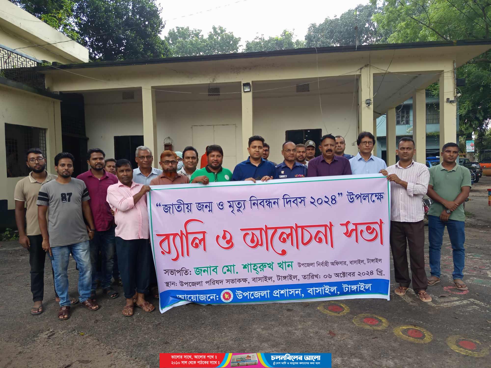 টাঙ্গাইলের বাসাইলে জাতীয় জন্ম ও মৃত্যু নিবন্ধন দিবস উপলক্ষে র্যালি ও আলোচনা সভা অনুষ্ঠিত হয়েছে ।