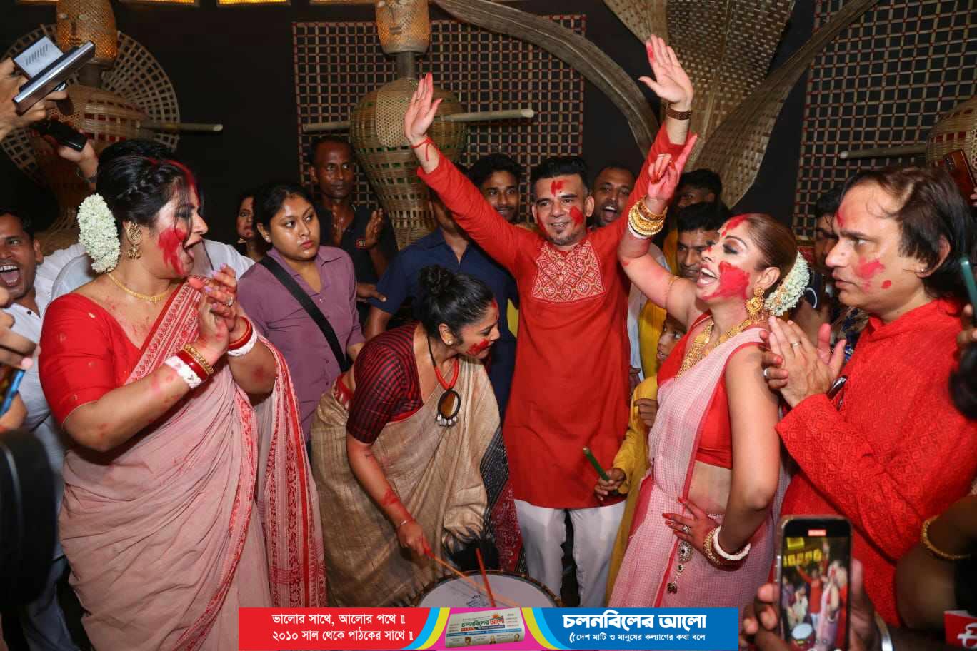 বিজয়া দশমীতে পূজা উদযাপনের প্রধান আকর্ষন নারীদের সিদুঁর খেলা।মণ্ডপ ও মন্দিরে দূর্গার পায়ে সিঁদুর নিবেদন করেন।সিঁদুরে দেবী দূর্গার শক্তির প্রতি শ্রদ্ধা নিবেদন করা হয় বলে অনেক নারীরাই জানান।শুধু তাই নয়,হিন্দু নারী-পুরুষ একে অপরের গায়ে,মুখে,কপালে সিঁদুর মাখিয়ে জীবনের সমৃদ্ধি কামনা করেন। উত্তরপাড়া শ্রী শ্রী জগন্নাথ মন্দির প্রাঙ্গণে বিকেল হতে সন্ধ্যা পর্যন্ত শিশু,কিশোর-কিশোরীদের নেচে গেয়ে বিনোদন যেন মাতিয়ে তুলেছিল মন্দির এলাকা।আবার সন্ধ্যায় প্রতিমা বিসর্জনের সময় অনেক ভক্তকে অশ্রুসিক্ত নয়নেও দেখা গেল।এবারে রাজনৈতিক দল বিএনপি,জামায়াতের পক্ষ হতেও নেয়া হয়েছিল কড়া পদক্ষেপ ও সতর্ক।সার্বক্ষনিক তারা পূজা উদযাপন কমিটির সদস্যদের সাথে যোগাযোগ ও মন্ডপ পরিদর্শন করেছেন।সলঙ্গা থানা পূজা উদযাপন কমিটির সাধারন সম্পাদক গজেন্দ্র নাথ মন্ডল জানান,এবারে প্রশাসন ও আইন শৃঙ্খলা বাহিনী খুবই তৎপর ছিল।তাই কোন প্রকার অপ্রীতিকর ঘটনা ছাড়াই নির্বিঘ্নে উৎসব মুখর পরিবেশে সুষ্ঠ, সুন্দর ও শান্তিপুর্ণ ভাবে সলঙ্গায় দূর্গাপূজা অনুষ্ঠিত হয়েছে।বিসর্জনকে ঘিরে প্রতি বছরের ন্যায় এবারেও সলঙ্গা বাজার কদমতলায় বসেছিল মেলা। মেলায় শিশুদের হরেক রকমের খেলনা,মাটির তৈরি পুতুল,হাড়ি পাতিল,ব্যাংক, তৈযসপত্র,ঝুড়ি-মুড়কি,খাজা,লাড্ ডুসহ প্লাস্টিকের তৈরি রকমারি জিনিস।মেয়েদের প্রসাধনীর দোকানও বসেছিল অনেক।পূজার শেষে বিসর্জনের দিন এ মেলাতে প্রচুর বেচাকেনা হয় বলে জানিয়েছেন মেলা আয়োজক কমিটি।