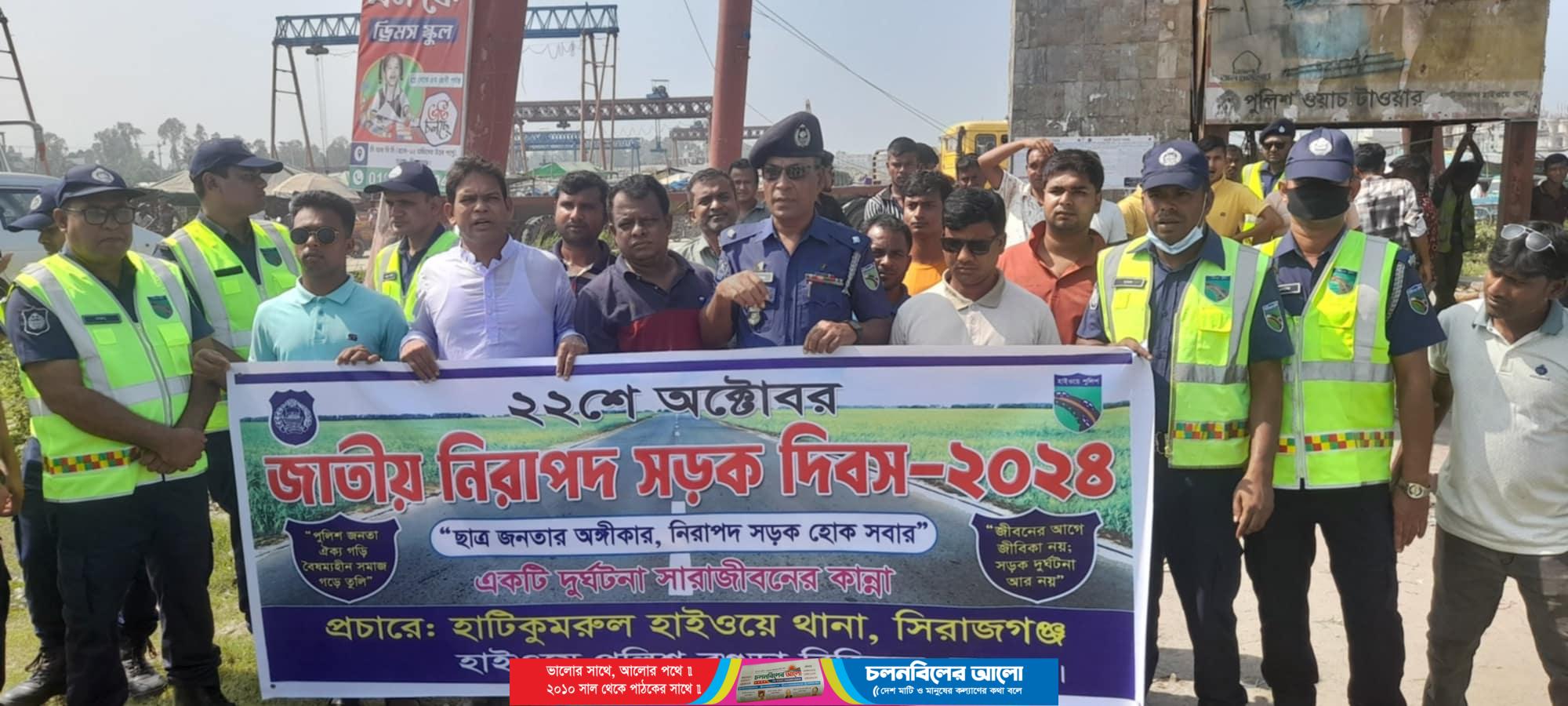 একটি দুর্ঘটনা সারা জীবনের কান্না। “ছাত্র জনতার অঙ্গীকার,নিরাপদ সড়ক হোক সবার” এ প্রতিপাদ্যকে সামনে রেখে সিরাজগঞ্জের হাটিকুমরুল হাইওয়ে থানার উদ্যোগে জাতীয় নিরাপদ সড়ক দিবস-২০২৪ পালিত হয়েচছে।হাইওয়ে পুলিশ বগুড়া রিজিয়নের দিক নির্দেশনায় হাটিকুমরুল হাইওয়ে থানার আয়োজনে মঙ্গলবার সকাল সাড়ে ১০ টায় হাটিকুমরুল রোড গোল চত্বরে একটি বর্ণাঢ্য রেলী বের করা হয়।হাটিকুমরুল হাইওয়ে থানার ওসি জাকির হোসেনের সভাপতিত্বে সংক্ষিপ্ত এক আলোচনা সভায় বক্তব্য রাখেন, হাটিকুমরুল ইউনিয়ন বিএনপির সাংগঠনিক সম্পাদক আতিকুল ইসলাম হেলাল,সলঙ্গা থানা মাইক্রোবাস মালিক সমিতির সাধারন সম্পাদক ও সলঙ্গা থানা যুবদলের যুগ্ম আহবায়ক আমিনুল ইসলাম,হাটিকুমরুল ইউনিয়ন বিএনপির যুগ্মসাধারন সম্পাদক রুহুল আমিন,মেম্বর শাহ আলী, সার্জেন্ট দুলাল উদ্দিন আহমেদ,এএসআই শরিফুল ইসলামসহ অনেকে।
