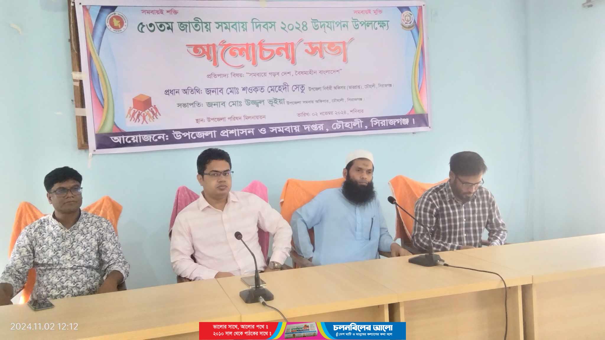 সমবায়ই গড়বো দেশ বৈষম্যহীন বাংলাদেশ এ শ্লোগানকে ঘিরে সিরাজগঞ্জের চৌহালী উপজেলায় যথাযোগ্য মর্যাদায় বিভিন্ন কর্মসূচির মধ্য দিয়ে জাতীয় সমবায় দিবস পালিত হয়েছে।