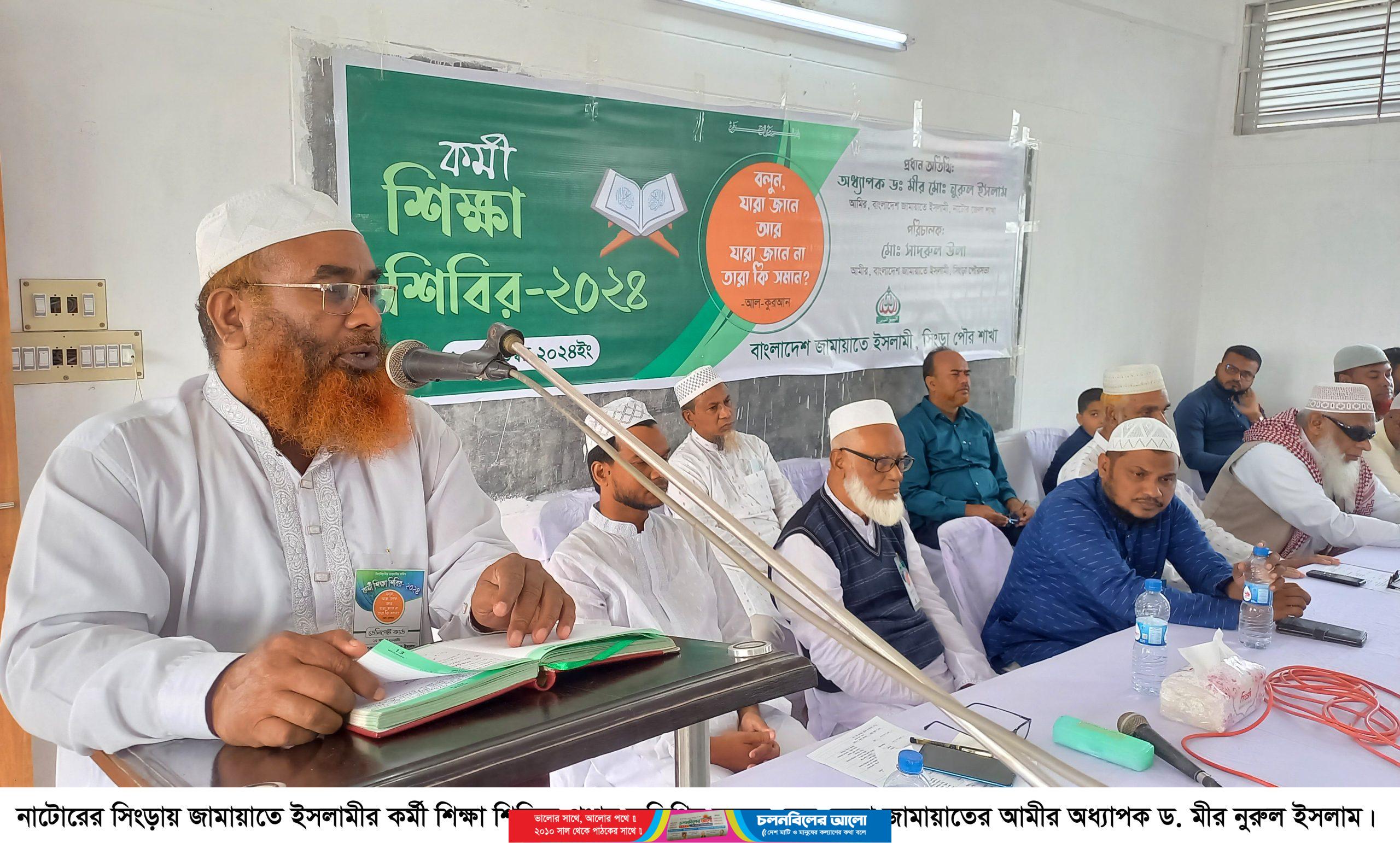 নাটোরের সিংড়ায় জামায়াতে ইসলামীর কর্মী শিক্ষা শিবির অনুষ্ঠিত হয়েছে। শনিবার (২৩ নভেম্বর) সিংড়া পৌর জামায়াতের আয়োজনে শহরের শোলাকুড়া ইসলামিয়া আলিম মাদ্রাসা প্রাঙ্গণে দিনব্যাপী এ কর্মী শিক্ষা শিবির অনুষ্ঠিত হয়।