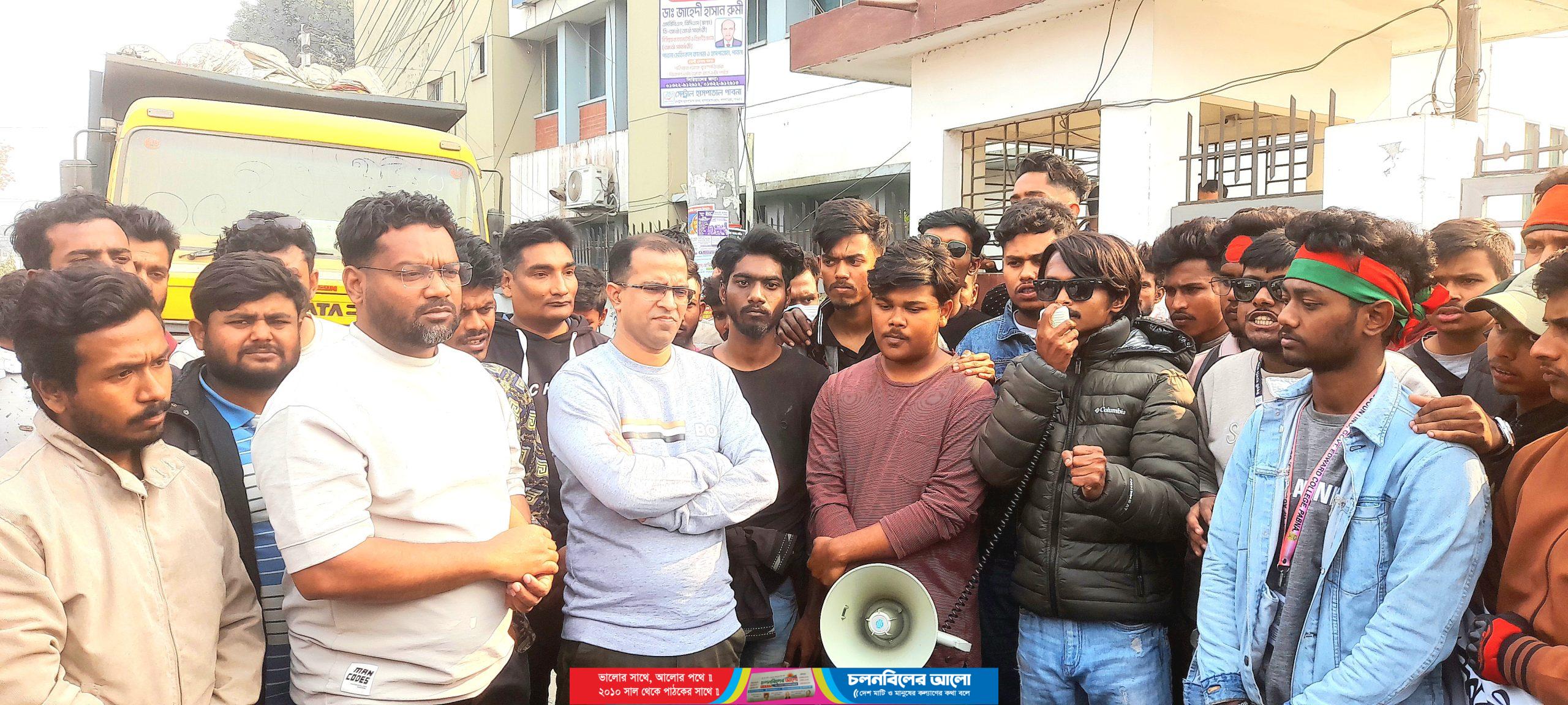 পাবনার ঈশ্বরদীতে বৈষম্য বিরোধী ছাত্র আন্দোলনের প্রতিনিধি ইব্রাহিম রহমানের উপর সন্ত্রাসী হামলাকারীদের গ্রেফতারের দাবিতে ঈশ্বরদী থানা ভবন ঘেরাও করে বিক্ষোভ কর্মসূচী পালন করেছে বৈষম্য বিরোধী ছাত্র আন্দোলনের সমন্বয়ক ও সাধারণ শিক্ষার্থীরা। (২৯ জানুয়ারি ) বুধবার সকাল ১১টা থেকে বিকাল ৩টা পর্যন্ত ঈশ্বরদী থানা ভবনের মূল ফটকের সামনে এই কর্মসূচী পালন করা হয়। বিক্ষোভ কর্মসূচী চলাকালে রাস্তার দু-পার্শ্বে যানবাহন আটকা পড়ে তীব্র যানজটের সৃষ্টি হয়। চরম দূর্ভোগে পড়ে হাজার হাজার মানুষ। কর্মসূচী চলাকালে বিক্ষোভকারীরা পুলিশের বিরুদ্ধে বিভিন্ন শ্লোগান দিয়ে ওসি’র প্রত্যাহার দাবি করেন। পরবর্তীতে ঈশ্বরদী সার্কেলের অতিরিক্ত পুলিশ সুপার বিপ্লব কুমার গোস্বামী ও সেনা বাহিনীর ওয়ারেন্ট অফিসার মো. শফিকুল ইসলাম ঘটনাস্থলে এসে হামলাকারীদের গ্রেফতারে ৭ দিনের সময় বেঁধে দিলে কর্মসূচী প্রত্যাহার করা হয়। বিক্ষোভ কর্মসূচীতে উপস্থিত ছিলেন, বৈষম্যবিরোধী ছাত্র আন্দোলনের সমন্বয়ক তানজিদুর রহমান দিহান, মাহিন মেহরাব, মেহের হোসেন শাওন, উপজেলা ছাত্রদলের প্রস্তাবিত কমিটির আহ্বায়ক মোস্তাফিজুর রহমান বিটু, উপজেলা ছাত্রদলের প্রস্তাবিত কমিটির সদস্য সচিব ইমরান হোসেন সোহাগ, ঈশ্বরদী পৌর ছাত্রদলের প্রস্তাবিত কমিটির আহবায়ক নাজমুল হাসান রিসাদ, ঈশ্বরদী সরকারী কলেজ ছাত্রদলের নেতা মাহমুদুল ইসলাম শাওন সহ উপজেলা বৈষম্য বিরোধী ছাত্র আন্দোলনের শতাধিক প্রতিনিধিরা এসময় উপস্থিত ছিলেন। বিক্ষোভ কর্মসূচীতে আগামী ৭ দিনের মধ্যে মামলার আসামিদের গ্রেফতার সহ তাদের অন্য সকল মামলা থানায় নথিভুক্ত এবং আসামীদের গ্রেফতারের দাবি জানানো হয়। অন্যথায় কঠোর থেকে কঠোর আন্দোলনের কর্মসূচি দেয়া হবে বলেও ঘোষণা দেওয়া হয়। উল্লেখ্য, গত ২৩ জানুয়ারি রাতে ঈশ্বরদী সরকারি কলেজ এর সামনে বৈষম্যবিরোধী ছাত্র আন্দোলনের প্রতিনিধি ও শহরের ফেরদৌস কলোনী এলাকার মৃত আব্দুস সালাম ডালুর ছেলে ইব্রাহিম রহমান এর উপর সন্ত্রাসীরা গুপ্ত হামলা চালিয়ে গুরুতর আহত করে নিষিদ্ধ ঘোষিত ছাত্রলীগের নেতাকর্মীরা। ওই দিন রাতেই নিষিদ্ধ সংগঠন পৌর ছাত্রলীগের ৬ নং ওয়ার্ড সাধারণ সম্পাদক ও মশুড়িয়া পাড়া এলাকার জাহিদুলের ছেলে শাকিল হোসেন (২১) ও একই এলাকার মতিন এর ছেলে রিফাত (২২) সহ অজ্ঞাত কয়েকজনকে আসামি করে ঈশ্বরদী থানায় মামলা দায়ের করে ইব্রাহিম। এ ঘটনায় পরদিন সাব্বির হোসেন নামে একজনকে আটক করে পুলিশ। মামলার অন্য আসামীদের গ্রেফতারের দাবিতে এই কর্মসূচী পালন করা হয়েছে।