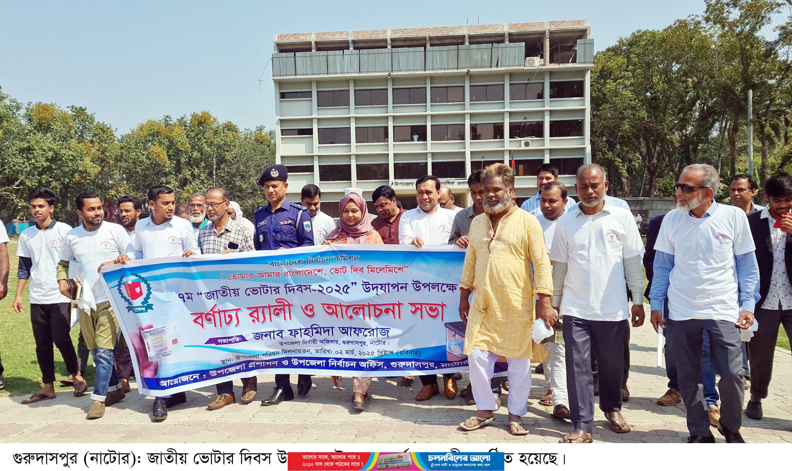 সারাদেশের ন্যায় নাটোরের গুরুদাসপুরে ‘তোমার আমার বাংলাদেশে, ভোট দিব মিলেমিশে’ শ্লোগানকে সামনে রেখে ৭ম জাতীয় ভোটার দিবস ২০২৫ পালিত হয়েছে। এ উপলক্ষে বর্ণাঢ্য র্যালী শেষে আলোচনা সভা অনুষ্ঠিত হয়।