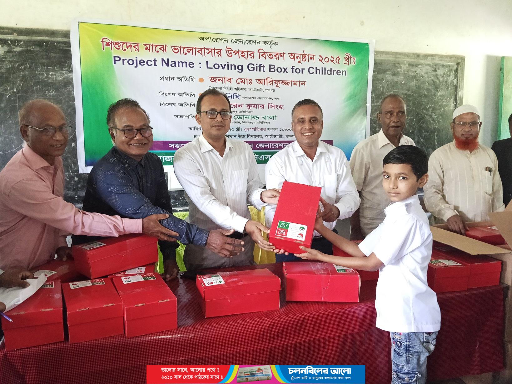 অপারেশন জেনারেশন,ঢাকা কর্তৃক পঞ্চগড়ের আটোয়ারীতে সুবিধাবঞ্চিত ও দরিদ্র শিশুদের মাঝে ভালোবাসার উপহার বিতরণ করা হয়েছে। অপারেশন জেনারেশন,ঢাকার সহযোগিতায় এবং দিনাজপুর এবিসিএস এর আয়োজনে বৃহস্পতিবার ( ২২ মে) সকালে উপজেলার বালিয়া লক্ষীথান উচ্চ বিদ্যালয়ে আনুষ্ঠানিকভাবে শিশুদের ভালোবাসার উপহার বক্স বিতরণ করা হয়। দিনাজপুর এবিসিএস এর ভারপ্রাপ্ত পালক প্রধান রেভাঃ ডোনাল্ড বালা এর সভাপতিত্বে প্রধান অতিথি হিসেবে উপজেলা নির্বাহী অফিসার মোঃ আরিফুজ্জামান উপস্থিত থেকে উপকারভোগী শিশু ও অভিভাবকদের উদ্দেশ্যে পরামর্শ ও উপদেশমূলক বক্তব্য রাখেন এবং অপারেশন জেনারেশন এর প্রতি কৃতজ্ঞতা প্রকাশ করে শিশুদের ভালোবাসার উপহার সামগ্রীর বক্স বিতরণ কার্যক্রম শুভ উদ্বোধন করেন। বিশেষ অতিথির বক্তব্য রাখেন, অপারেশন জেনারেশন বাংলাদেশ এর কেন্দ্রিয় প্রতিনিধি মিঃ সাইমন হীরা, দিনাজপুর এবিসিএস এর সভাপতি ও লক্ষীথান উচ্চ বিদ্যালয়ের প্রধান শিক্ষক মিঃ হরেন কুমার সিংহ। অতিথিগণ বালিয়া লক্ষীথান উচ্চ বিদ্যালয় ও বালিয়া ব্যাপ্টিষ্ট চার্চ এলাকায় প্রায় তিনশত শিশুর মাঝে ভালোবাসার গিফ্ট বক্স বিতরণ করেন। অনুষ্ঠানের সভাপতি বলেন, এ উপজেলার বিভিন্ন এলাকায় সুবিধাবঞ্চিত ও দবিদ্র শিশুদের মাঝে এক হাজার ভালোবাসার গিফ্ট বক্স বিতরণ করা হবে। গিফ্ট বক্সে চমৎকার ও নজরকাড়া উপহার সামগ্রী পেয়ে দারুন খুশি শিশুরা। এ উপহার তাদেরকে দারুনভাবে আনন্দিত করেছে। শিশু ও অভিভাবকরা অপারেশন জেনারেশন সহ এবিসিএস-কে ধন্যবাদ জানিয়েছেন তাদের উপহার দেওয়ার জন্য। প্রধান অতিথির বক্তব্যে ইউএনও মোঃ আরিফুজ্জামান বলেন. শিশুদের পড়াশোনার পাশাপাশি খেলাধুলা ও বিনোদন তাদের শারীরিক ও মানসিক বিকাশে গুরুত্বপূর্ণ ভুমিকা রাখে। একটি সুস্থ ও উন্নত সমাজ গঠনে আমাদের প্রত্যেক পরিবারে শিশুদের সুশিক্ষা ও সুস্বাস্থ্যের দিকেও সমান গুরুত্ব দেওয়া উচিৎ। তিনি বলেন, শিশুরা হাতে উপহার পেয়ে তাদের মুখে হাসে ফুটে উঠেছে। এমন আয়োজন শিশুদের মধ্যে আত্মবিশ্বাস ও আনন্দ ছড়িয়ে দেয়, যা তাদের ভবিষ্যৎ গঠনে ইতিবাচক প্রভাব ফেলে। এসময় অন্যান্যদের মধ্যে এলাকার সুধিজন,শিশু শিক্ষার্থী, অভিভাবকসহ গণমাধ্যমকর্মীগণ উপস্থিত ছিলেন।