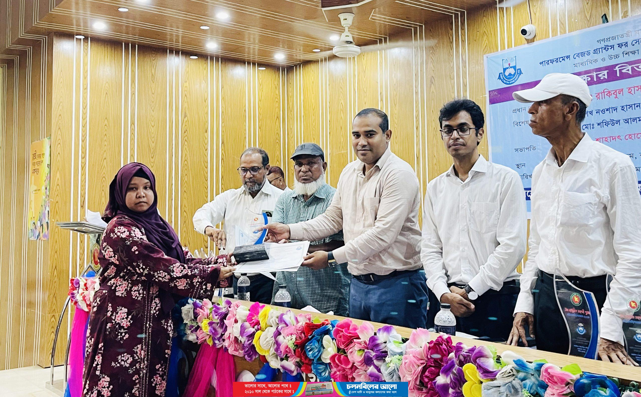 পারফরমেন্স বেজড গ্র্যান্টস ফর সেকেন্ডারি ইন্সটিটিউশনস স্কিম, এসইডিপি মাধ্যমিক ও উচ্চ শিক্ষা অধিদপ্তর, শিক্ষা মন্ত্রনালয়ের আওতায় বৃহস্পতিবার বিকেলে উপজেলা পরিষদ হলরুমে এসব পুরস্কার বিতরণ করা হয়েছে। বিতরণ অনুষ্ঠানের আয়োজন করেন উপজেলা মাধ্যমিক শিক্ষা অফিস ও নওগাঁ জেলা শিক্ষা অফিস।