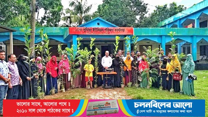 প্রশিক্ষণে অংশগ্রহণকারী নারীদের প্রত্যেককে একটি করে ফলজ চারা বিতরণ করে নবদৃষ্টি ফাউন্ডেশন।