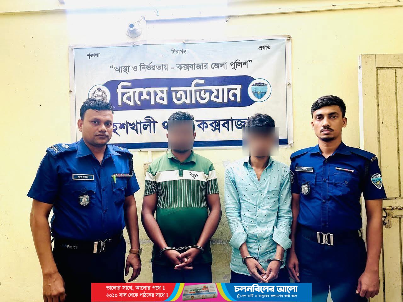 গত ২৯ আগস্ট ২০২৫ইং কক্সবাজার জেলার মহেশখালী থানা পুলিশের একটি আভিযানিক দল বিশেষ এই অভিযান পরিচালনা করেন এদের আটক করা হয়। কক্সবাজার সদর থানাধীন গুমগাছতলা এলাকায় চাঞ্চল্যকর একাধিক হত্যা মামলা ও অস্ত্র মামলার এজাহারনামীয় পলাতক আসামীরা হচ্ছে (১) আনসার উল্লাহ (২৩), পিতা-মোঃ ইসমাইল, সাং-ছামিরাঘোনা, ০৭নং ওয়ার্ড, এ/পি-পূর্ব আধারঘোনা, কালারমারছড়া ইউনিয়ন থানা-মহেশখালী (২) দেলোয়ার হোসেন (২৬), পিতা-আবুল হোসেন, সাং-সমিতির পাড়া, ০১নং ওয়ার্ড,থানা-কক্সবাজার সদর।