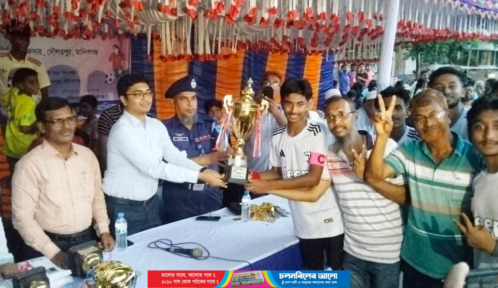 মানিকগঞ্জের দৌলতপুরে ৫২তম জাতীয় স্কুল, মাদ্রাসা ও কারিগরি শিক্ষা ক্রীড়া প্রতিযোগিতা ও পুরস্কার বিতরণ অনুষ্ঠান বৃহস্পতিবার (২৫ সেপ্টেম্বর) বিকালে উপজেলা আন্তঃ স্কুল, মাদ্রাসা ও কারিগরি শিক্ষা ক্রীড়া সমিতির আয়োজনে সরকারি পি এস হাইস্কুল মাঠে অনুষ্ঠিত হয়। ফুটবল খেলায় আমতুলী এফ এস উচ্চ বিদ্যালয় কে ০-৩ গোলে হারিয়ে দৌলতপুর সরকারি পি এস উচ্চ বিদ্যালয় চ্যাম্পিয়ন হয়েছে।উক্ত অনুষ্ঠানে প্রধান অতিথি হিসেবে বক্তব্য রাখেন মো. আহসানুল আলম উপজেলা ভূমি কমিশনার দৌলতপুর , বিশেষ অতিথি হিসেবে বক্তব্য রাখেন এ আর আল মামুন থানা অফিসার ইনচার্জ (ওসি) দৌলতপুর,মো. মিজানুর রহমান প্রধান শিক্ষক সরকারি পি এস উচ্চ বিদ্যালয় দৌলতপুর, মোঃ মইনুল ইসলাম উপজেলা একাডেমিক সুপারভাইজার দৌলতপুর সহ বিভিন্ন শিক্ষাপ্রতিষ্ঠানের প্রধান শিক্ষক ও সহকারী শিক্ষকবৃন্দ উপস্থিত ছিলেন।