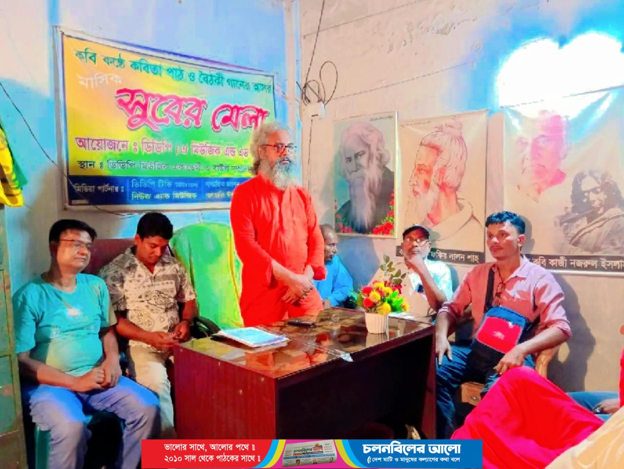 পাবনার ঈশ্বরদীতে সুনামধন্য সাহিত্য সংস্কৃতি ও সেবা ধর্মী প্রতিষ্ঠান ডিডিপি’র নিয়মিত আয়োজন মাসিক কবি কন্ঠে কবিতা পাঠ ও বৈঠকী গানের আসর সুরের মেলা-৩৫২ অনুষ্ঠিত হয়েছে। শুক্রবার (২৬ সেপ্টেম্বর’) সন্ধায় রেলওয়ে মালগুদাম রোডস্থ নিজস্ব কার্যালয়ে ডিডিপি’র চেয়ারম্যান, ঈশ্বরদী থেকে নিয়মিত প্রকাশিত সাপ্তাহিক জংশন পত্রিকার সম্পাদক, ঈশ্বরদী প্রেসক্লাবের সাবেক সভাপতি, কবি কলামিস্ট গীতিকার সুরকার সংগঠক সমাজ সেবক ও শিল্পী সূফী সাধক গুরুজী এস এম রাজা’র সভাপতিত্বে ও ডিডিপি’র পরিচালক (সাহিত্য) কবি ওয়াজেদ আলীর সঞ্চালনায় অনুষ্ঠিত এ’অনুষ্ঠানে শুভেচ্ছা বক্তব্যে রাখেন, এসএসএই (ওয়ে) উৎপল মন্ডল, জাসাস উপজেলা সভাপতি নুর মোহাম্মদ বিশ্বাস, ডিডিপির পরিচালক (সংগীত) ও রূপপুর হাইস্কুলের প্রধান শিক্ষক মাসুদ রানা, ডিডিপির সাহিত্য বিষয়ক পরিচালক কবি রমজান আলী, বিশ্ব আশেকান মঞ্জিল নূর নবী মওলা পুর দরবার শরীফের পীর কবি শাহ সূফী হাফিজুর রহমান হাফিজ, ডিডিপির সদস্য কবি মুনতাজ আলী, লুমিনাস গ্রুপের পাবনা জেলা উদ্যোক্তা ও টিএসএম জহুরুল ইসলাম জয়, রেলওয়ে শিল্পী গোষ্ঠীর সাংগঠনিক সম্পাদক সাইফুল ইসলাম খোকন প্রমুখ। কবিতা আবৃত্তি করেন, কবি ওয়াজেদ আলী, কবি রমজান আলী, কবি হাফিজুর রহমান হাফিজ, কবি মুনতাজ আলী, কবি সাইফুল ইসলাম, কবি শাওন কুমার গুপ্ত, কবি মুনমুন আক্তার, কবি এস এম রাজা। সংগীত পরিবেশন করেন শিল্পী নূর মোহাম্মদ বিশ্বাস, লিটন বাউল, আব্দুর রহিম বকুল, আব্দুস সাত্তার, সুমাইয়া ইসলাম ও এস এম রাজা।