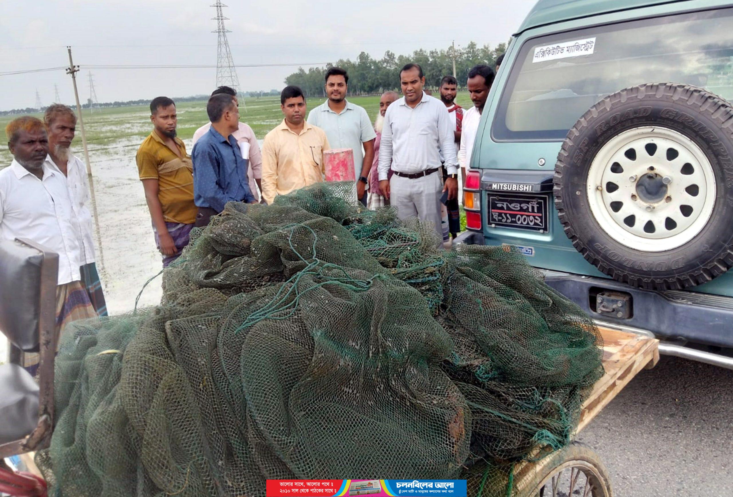 নির্বাহী ম্যাজিস্ট্রেট রাণীনগরের ইউএনও রাকিবুল হাসান এই অভিযান পরিচালনা করেন। এ সময় উপজেলা সিনিয়র মৎস্য কর্মকর্তা পলাশ চন্দ্র দেবনাথ প্রমুখ উপস্থিত ছিলেন।