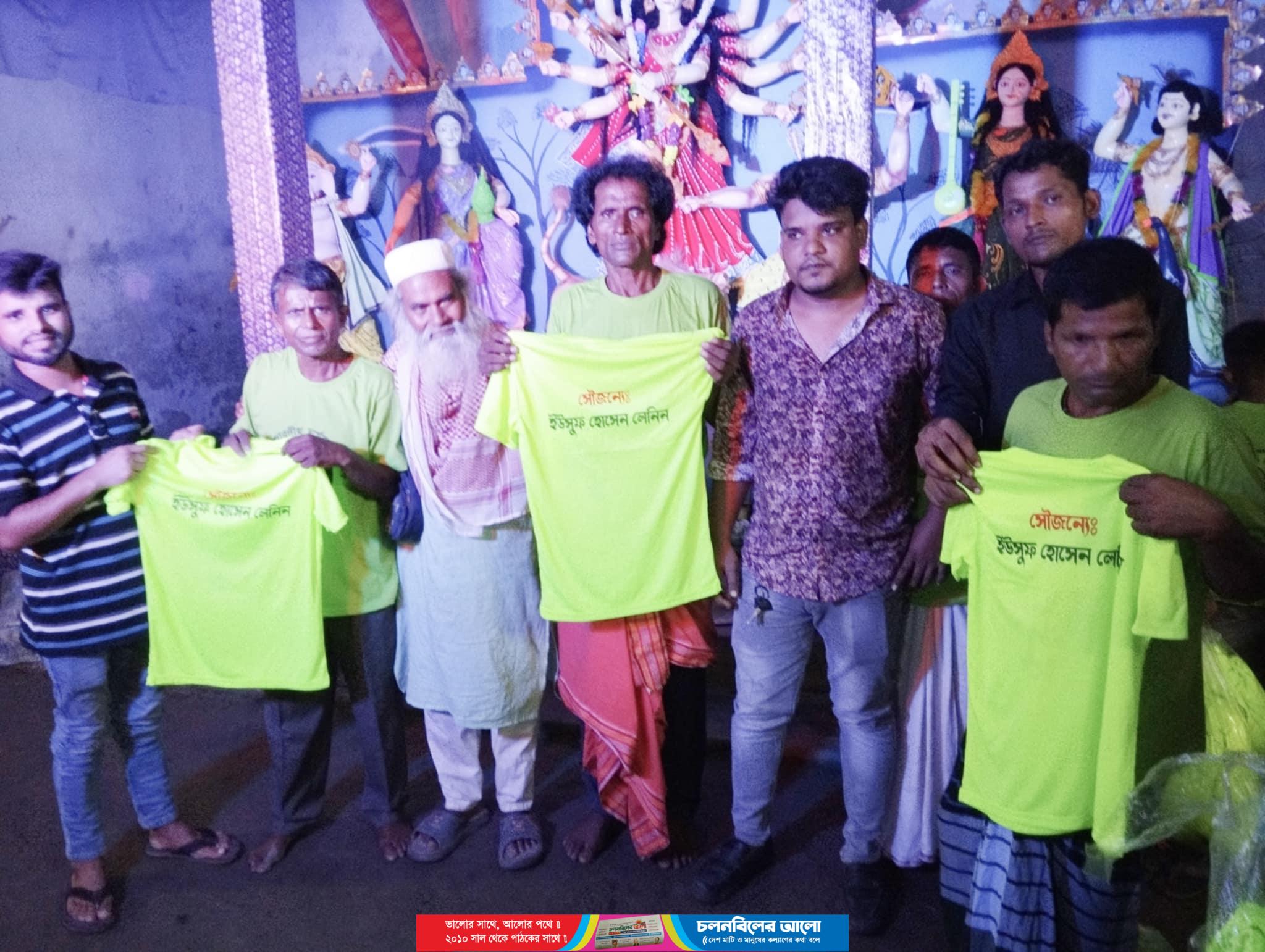 বাংলাদেশ পূজা উদযাপন ফ্রন্ট ধুবড়িয়া ইউনিয়ন শাখার সদস্য সচিব হেমন্ত শীল জানায়, ধুবড়িয়া ইউনিয়নের সাবেক চেয়ারম্যানের সুযোগ্য নাতি ইউসুফ হোসেন লেনিন এর পক্ষ থেকে প্রাপ্ত টি-শার্ট উপহার প্রতিটি মণ্ডপে পৌঁছে দেওয়া হয়েছে। এতে আমরা ব্যাপক আনন্দিত। আমাদের কমিটির পক্ষ থেকে তাকে ধন্যবাদ জানাই। তিনি বিদেশে থেকেও সবসময় আমাদের খোঁজখবর নিয়েছেন। তিনি পুরো ইউনিয়নে বসবাসরত হিন্দু ধর্মাবলম্বীদের আস্থা অর্জনের প্রতীক হয়ে উঠেছেন।