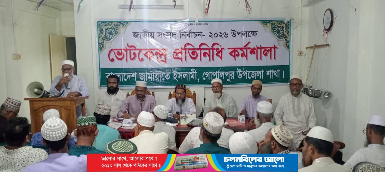 আসন্ন ত্রয়োদশ জাতীয় সংসদ নির্বাচনকে সামনে রেখে টাঙ্গাইলের গোপালপুর উপজেলায় ভোটকেন্দ্র প্রধানদের নিয়ে জামায়াতে ইসলামী একটি কর্মশালা আয়োজন করেছে। শুক্রবার (৩ অক্টোবর) সকাল ৯টায় উপজেলা জামায়াত কার্যালয়ে এ কর্মশালা অনুষ্ঠিত হয়।