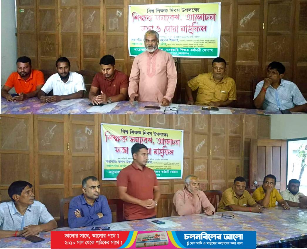 কিশোরগঞ্জের কটিয়াদীতে বেসরকারি শিক্ষক কর্মচারি ফোরামের আয়োজনে বিশ্ব শিক্ষক দিবস পালন উপলক্ষে আলোচনা সভা ও দোয়া মাহফিল অনুষ্ঠিত হয়েছে।