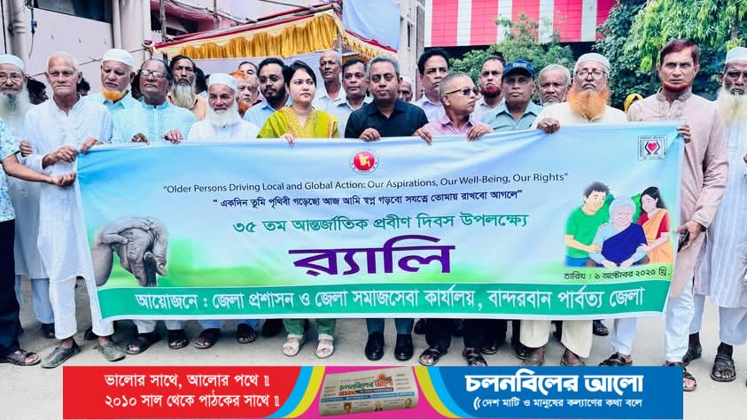 “একদিন তুমি পৃথিবী গড়েছো আজ আমি স্বপ্ন গড়বো সযত্নে তোমায় রাখবো আগলে” – এই প্রতিপাদ্যে বান্দরবানে বিভিন্ন কর্মসূচির মধ্য দিয়ে আন্তর্জাতিক প্রবীণ দিবস পালিত হয়েছে।