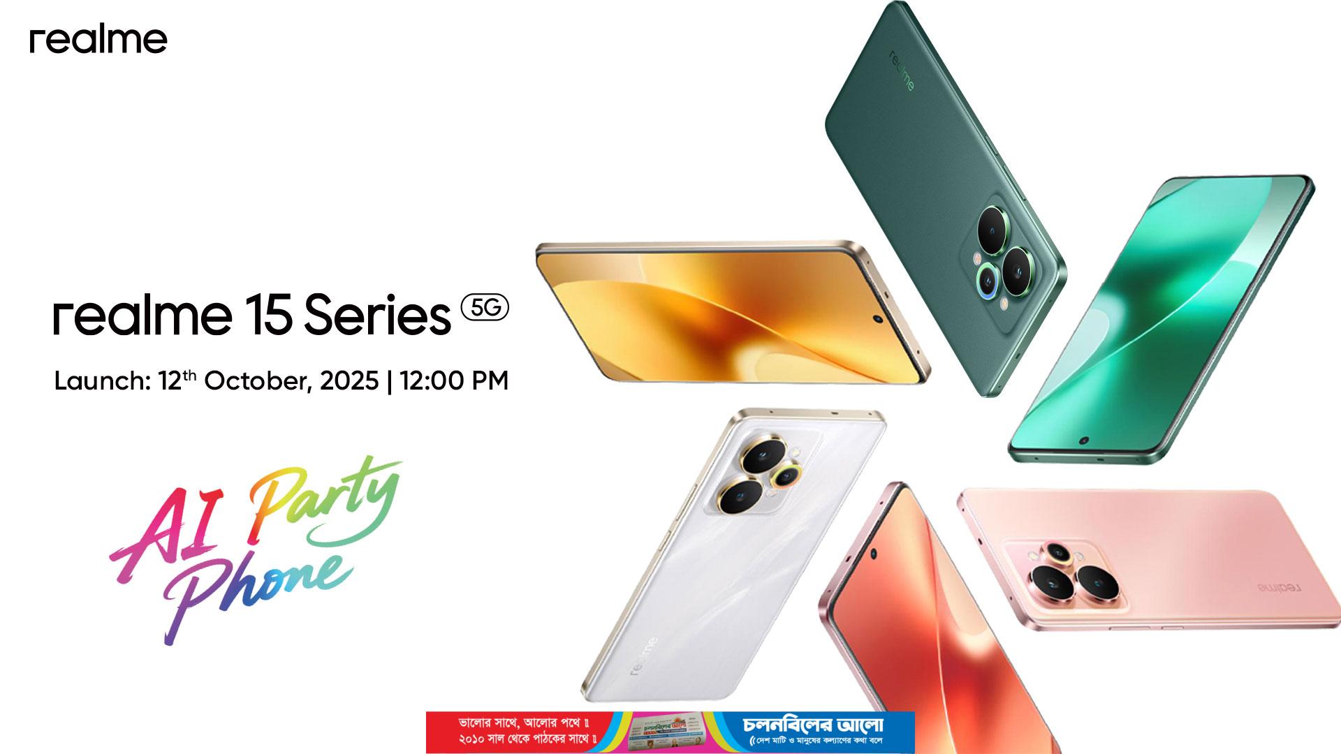 বাংলাদেশের বাজারে বহুল প্রতীক্ষিত ‘এআই পার্টি ফোন’ রিয়েলমি ১৫ সিরিজ নিয়ে আসতে যাচ্ছে তরুণদের পছন্দের স্মার্টফোন ব্র্যান্ড রিয়েলমি। আগামী ১২ অক্টোবর বহুল প্রত্যাশিত এই ফোনটি ৩টি ভার্সনে নিয়ে আসা হচ্ছে – রিয়েলমি ১৫, রিয়েলমি ১৫ প্রো ও রিয়েলমি ১৫টি।  এবার, ক্রেতারা আগের চেয়েও বেশি চয়েজ, পাওয়ার ও স্টাইল পছন্দ করার সুযোগ পাবেন। ক্রেতারা পছন্দের এই মডেলগুলো আগামী ১২-১৫ অক্টোবর পর্যন্ত প্রি-বুক করতে পারবেন এবং এআই স্মার্টফোনের নেক্সট-জেন অভিজ্ঞতা সবার আগে গ্রহণ করার সুযোগ পাবেন।
